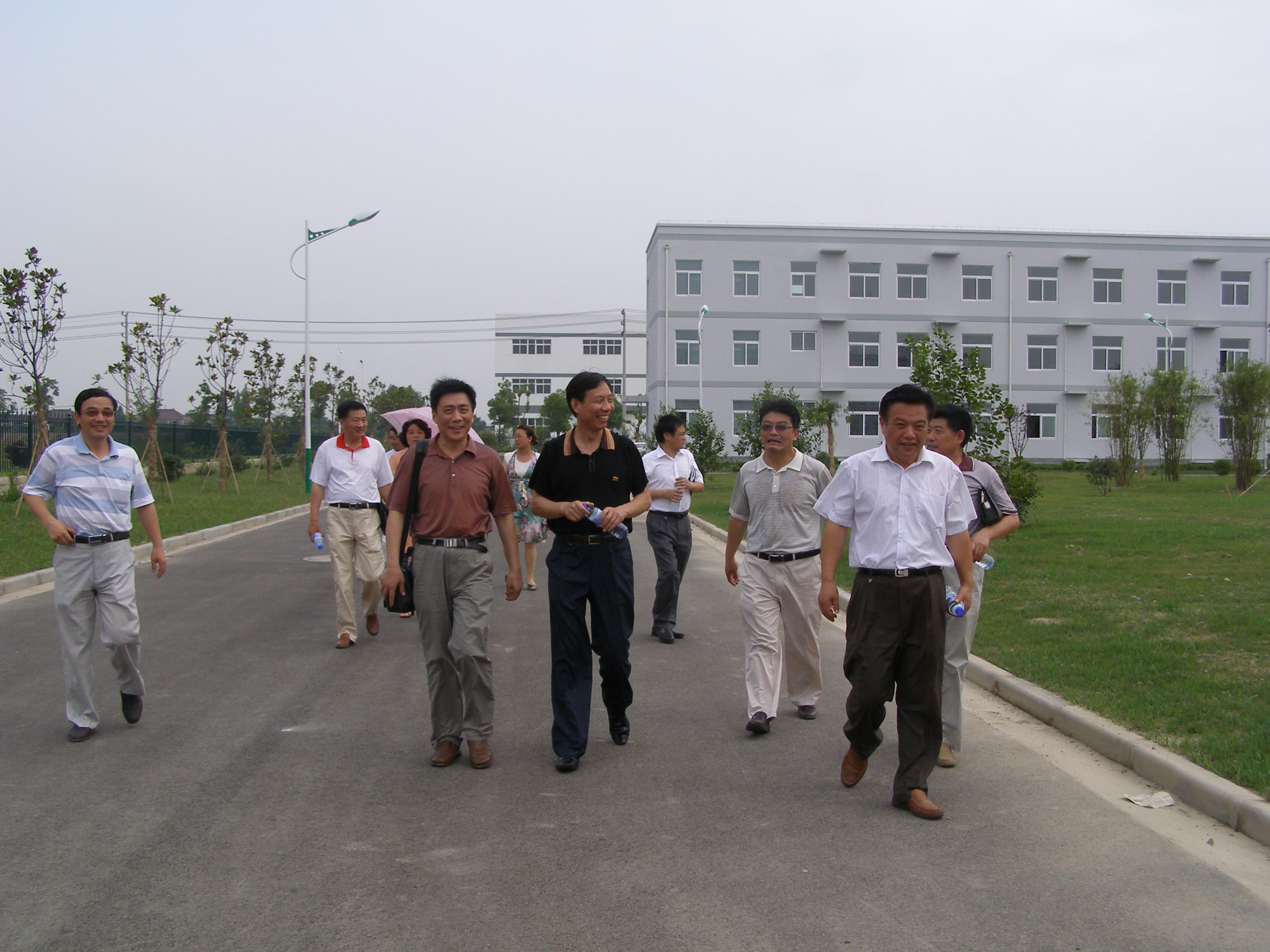 7月1日上午,副校长范健带领农牧场乳品厂迁建工作领导小组成员冒着酷暑来到实验农牧场扬大康源乳业有限公司建设工地现场视察。