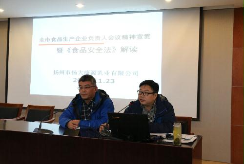会上,场技术总监印伯星向与会人员宣贯了全市食品生产企业负责人会议精神,详细解读了2015年最新修订的《中华人民共和国食品安全法》,他围绕新法亮点、结合农牧场康源乳业的生产实际,指出了食品安全管理工作的重点内容。