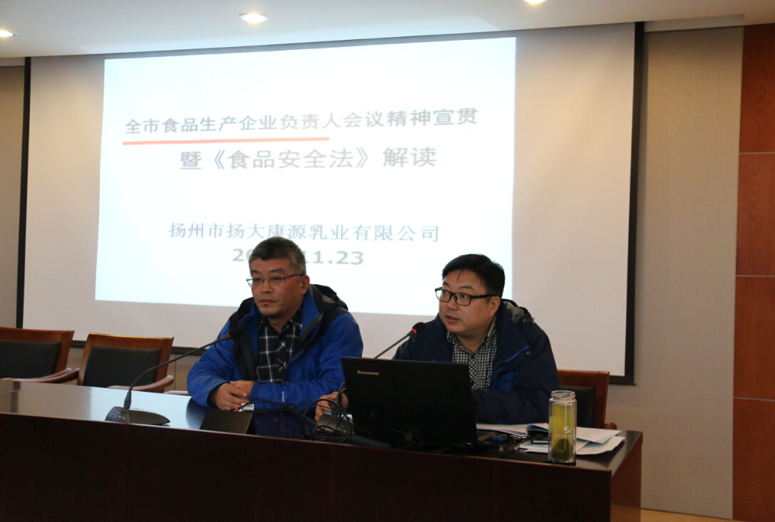 11月23日下午,我场康源乳业有限公司在南场区三楼报告厅召开全市食品生产企业负责人会议精神宣贯暨《食品安全法》解读专题培训会。会议由房东升副场长主持。