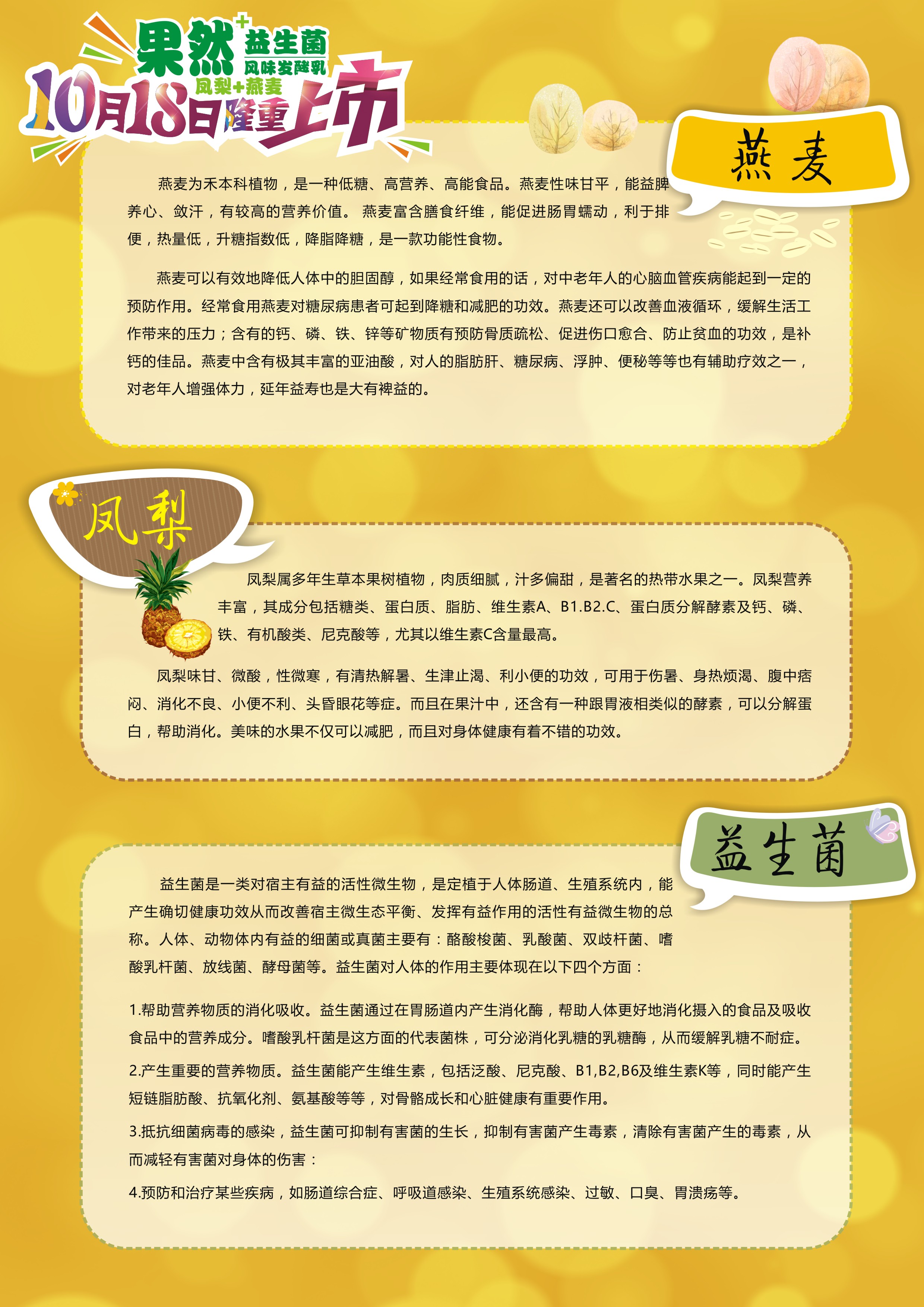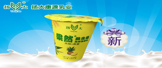 号外,号外!!扬大牛奶再添新成员,果然+凤梨燕麦酸奶十月十八日隆重上市,产品添加凤梨、燕麦果酱,香味浓郁,口感酸爽细腻。凤梨加燕麦,健康新一代。