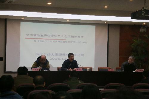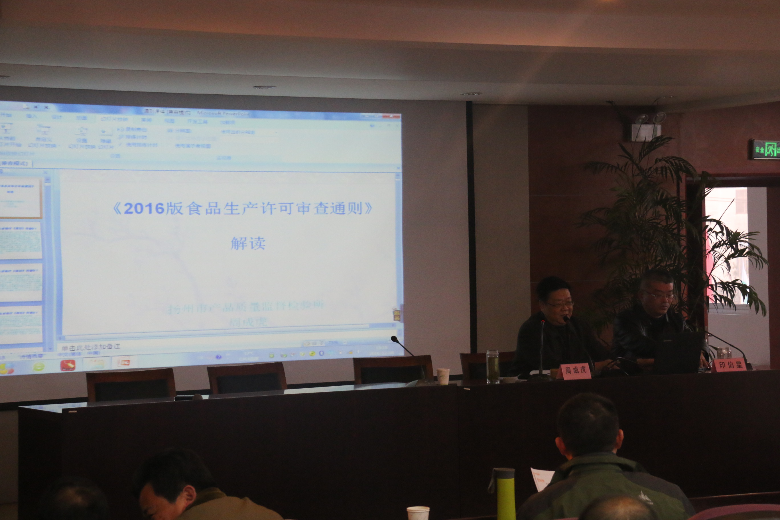 12月8日下午,印伯星副场长主持召开康源公司全市食品生产企业负责人会议精神宣贯暨《食品生产经营日常监督检查管理办法》解读工作会议,为更好的传达扬州市食品生产企业负责人会议精神,特邀请扬州市产品质量监督检验所周成虎主任就新版《食品生产许可审查通则》、《食品生产许可管理办法》为我场职工进行解读,印场长要求各部门及时传达贯彻本次会议精神,切实落实好安全生产主体责任,不安全不生产,生产必安全,及时排查隐患,时时防范隐患,从我做起,乳品安全,我们共同的责任。陈国宏副校长、张建军书记、房东升副场长出席会议。