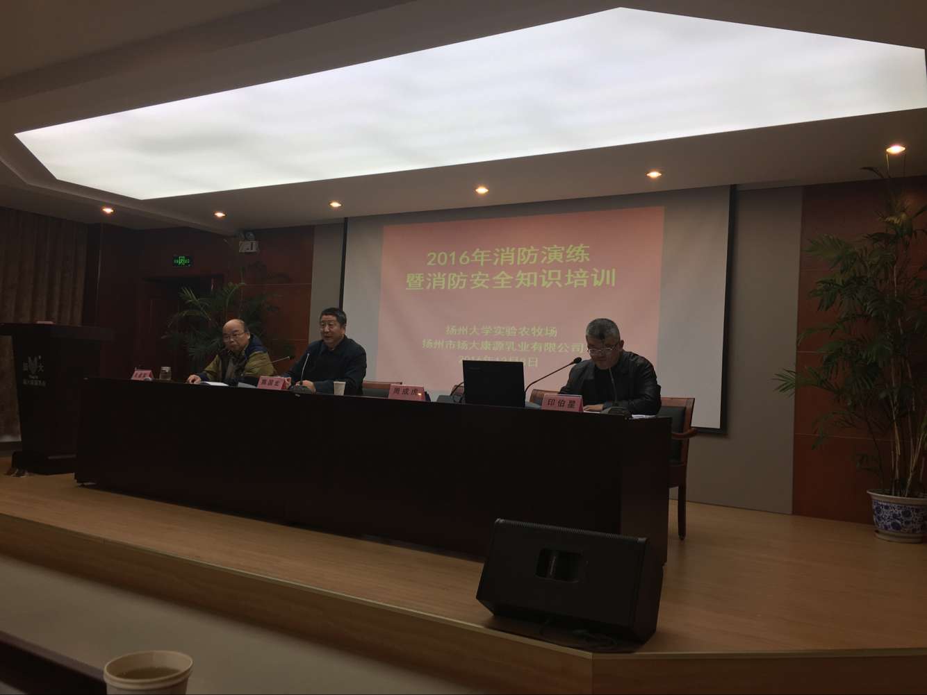 为切实做好冬季安全工作,让每位员工了解相关安全知识,12月8日下午,我场在南场区举行消防演练暨安全知识培训,邀请省安居防火中心扬州分部教员部主任向永胜为我场职工进行消防知识培训,扬州市产品质量监督检验所周成虎主任就新版《食品生产许可审查通则》、《食品生产许可管理办法》为我场职工进行解读。副校长陈国宏出席本次培训并做了讲话,陈校长要求高度重视安全工作,确保生产安全、食品安全,把安全贯穿于各项工作的全过程,确保生产“规范、安全、放心”。扬州大学保卫处处长刘汉柏、副处长孔德庆、我场张建军书记、房东升副场长参加会议。副场长印伯星主持了会议。