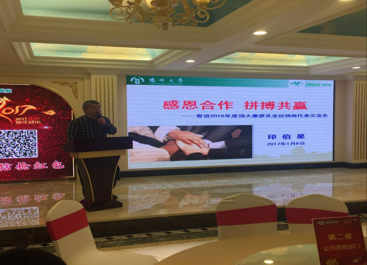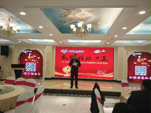 1月8日上午,我场康源公司一年一度的经销商代表交流会隆重召开,本次交流会主题为:感恩、精耕、共赢。会上林建群场长、房东升副场长分别致词,印伯星副场长做《感恩合作 拼搏共赢》的主题报告,会上销售部经理吕福浩总结了2016年销售工作,对2017年销售工作进行布置;随后对2016年度表现优异的经销商进行颁奖,同时开展丰富多彩的互动游戏及抽奖活动,会议在销售部全体职工的《感恩的心》歌声中结束。张建军书记、陈后庆副书记、华鹤良副调研员、公司各部门负责人等出席活动,营销总监朱志祥主持会议。