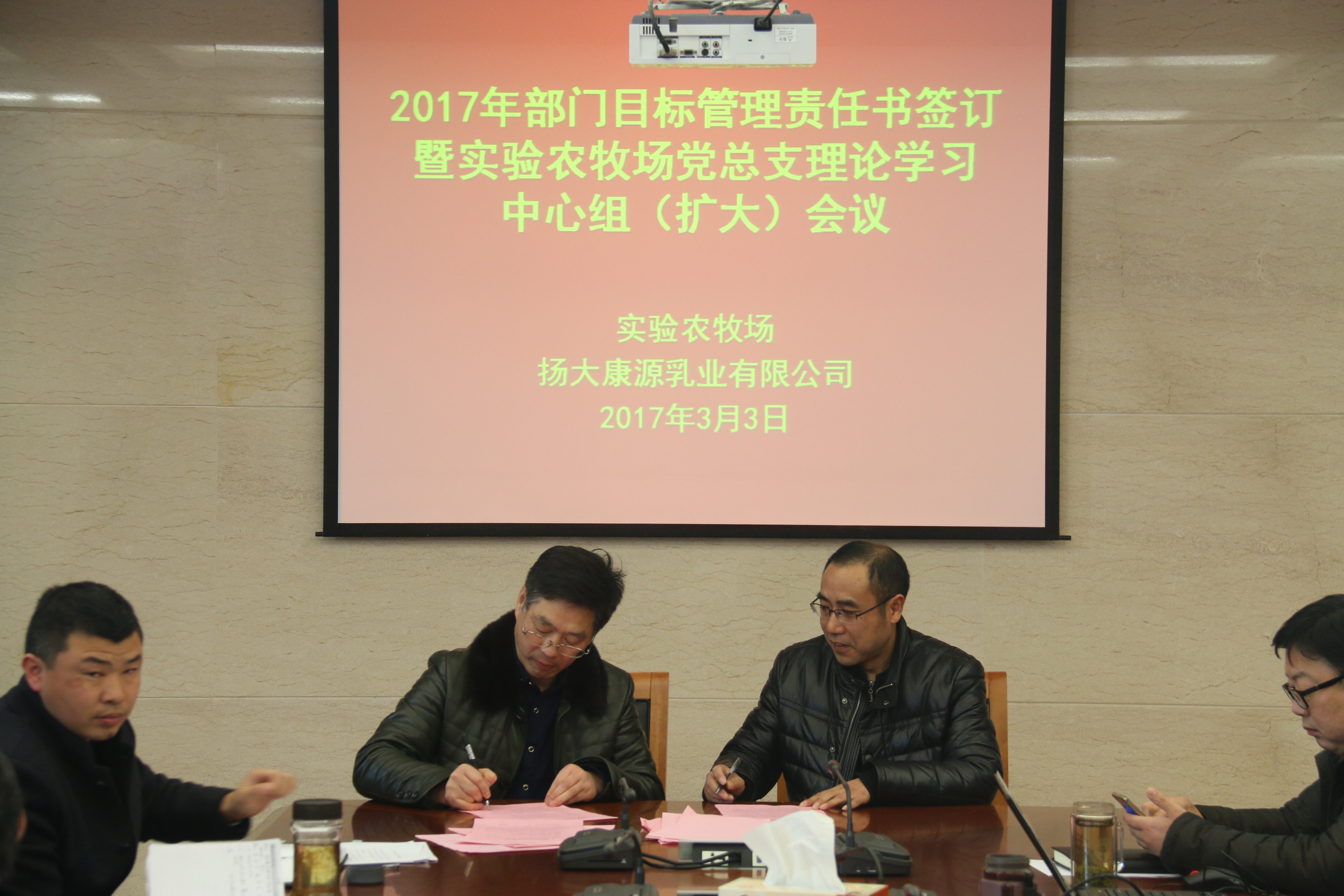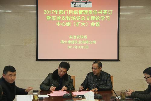 3月3日下午,我场召开2017年部门目标管理责任书签订暨实验农牧场党总支理论学习中心组(扩大)会议,张建军书记主持会议。全体场领导、部门负责人出席会议。