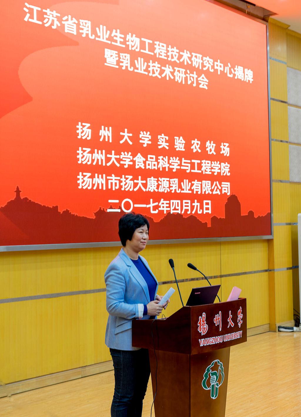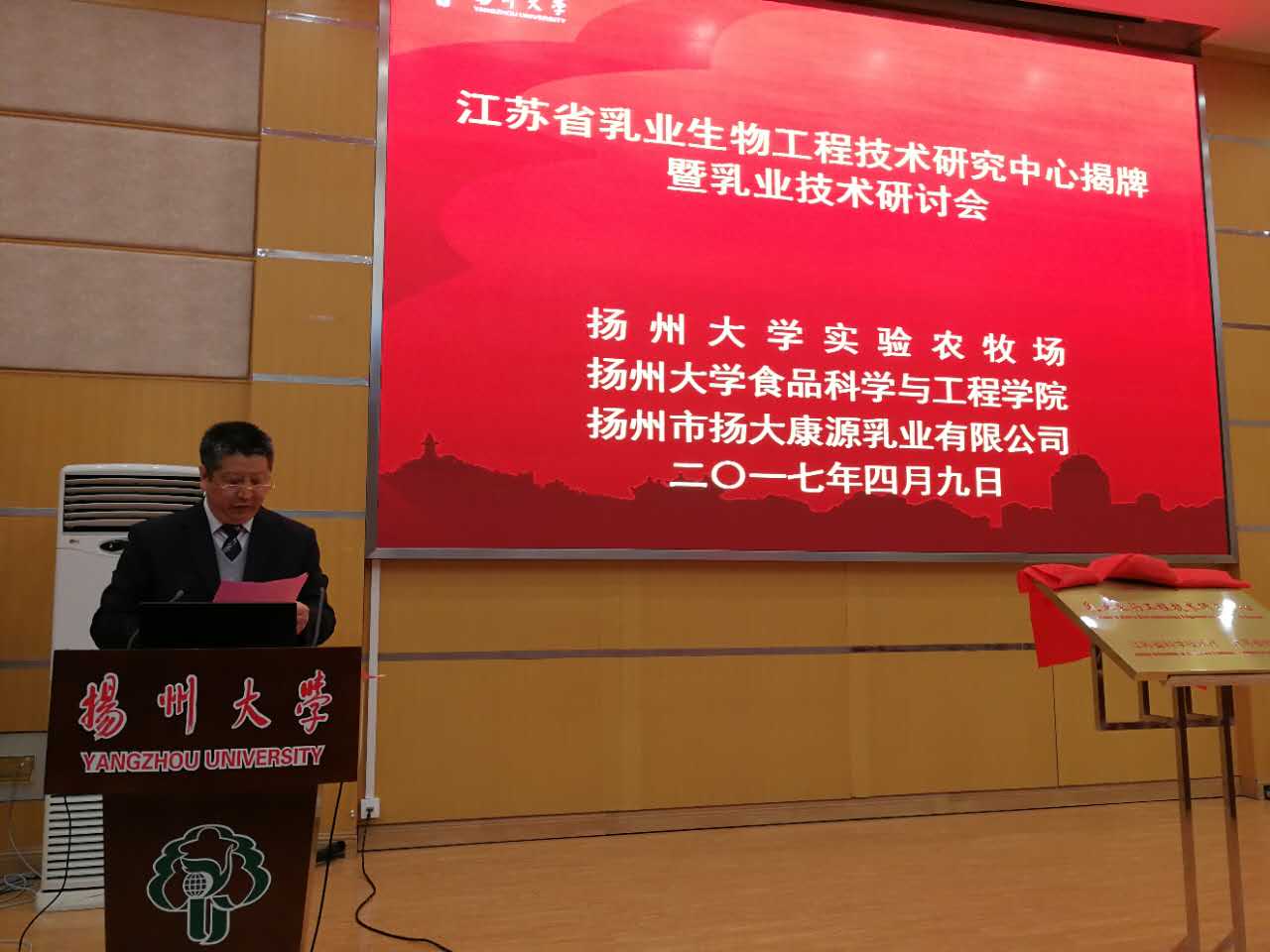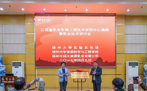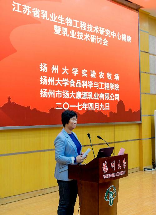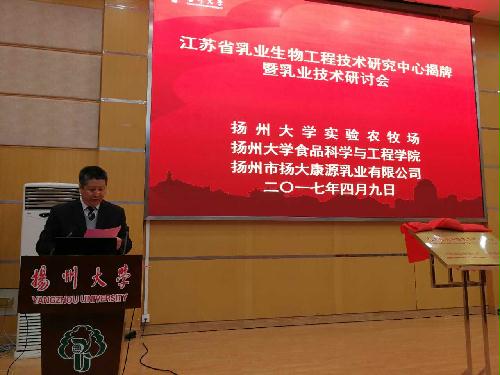 陈国宏副校长发表热情致辞,并指出,康源乳业有限公司应以揭牌为新的起点,进一步加快公司科技工作建设,创新工作理念,创新工作思路,创新工作模式,创新工作措施,努力把公司打造成为江苏省乳品加工与科技研究于一体的现代化的科技型乳品企业,为扬州大学双一流高水平研究型大学建设作出更大贡献。