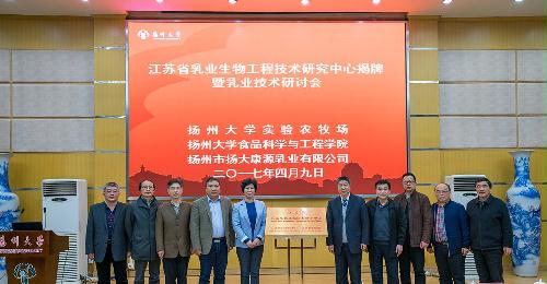 4月9日上午,江苏省乳业生物工程技术研究中心揭牌暨乳业技术研讨会在荷花池校区教学主楼多功能厅隆重举行。国家乳业工程技术研究中心刘鹏主任、陈国宏副校长出席仪式并讲话。刘鹏主任与陈国宏副校长为省乳业生物工程技术研究中心揭牌。