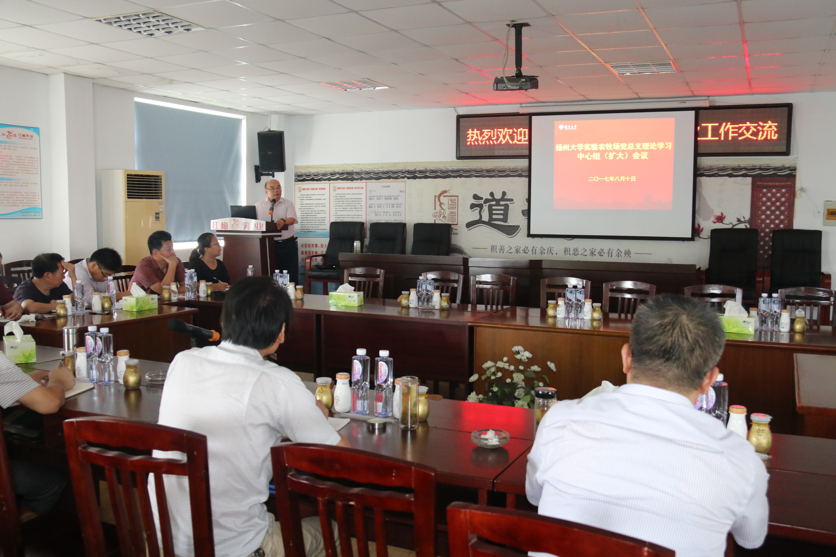 8月10日,实验农牧场召开党总支理论学习中心组(扩大)会议,全体场领导、 部门负责人、党支部书记参加了会议。中心组(扩大)会议上,张建军书记围绕“旗帜鲜明讲政治、凝心聚力谋发展”作了专题辅导报告,各与会人员结合张书记报告,围绕2017年下半年目标如何抓落实 、结合生态智慧牧场搬迁,如何促进乳业、农业、牧业及其他产业协调发展,以及如何进一步加强实验农牧场作风建设作了交流发言。