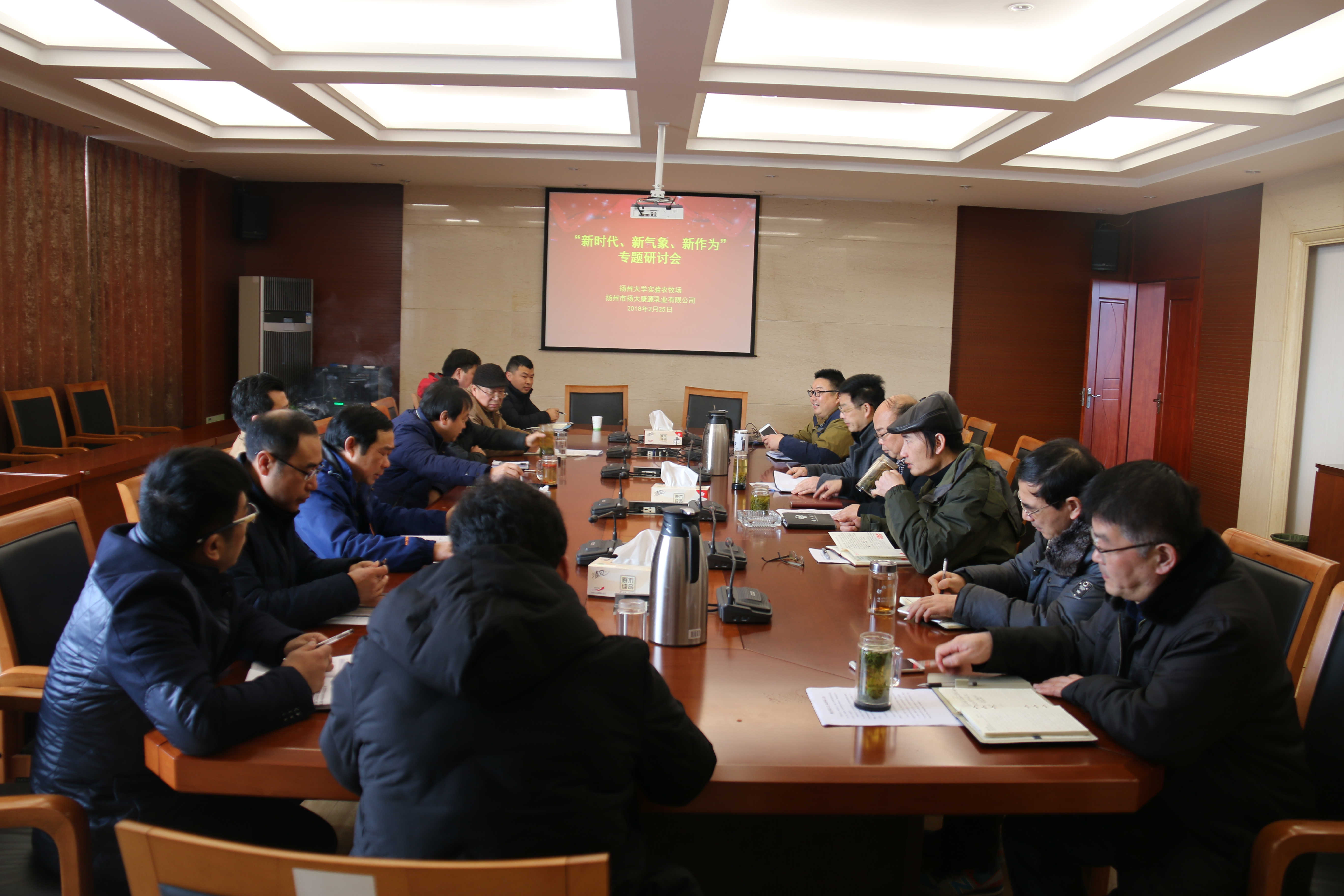 为深入学习党的十九大精神和习近平新时代中国特色社会主义思想,更好谋划2018年工作,2月25日,我场召开“新时代、新气象、新作为”专题研讨会。会议由张建军书记主持,全体场领导、科长、部门负责人出席会议。