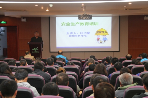 11月7日下午,我场在南场区科技报告厅召开2018年安全生产教育培训暨消防宣传日主题活动,活动由张建军书记主持。场领导、科长、部门助理以上负责人、部门安全员等参加会议。