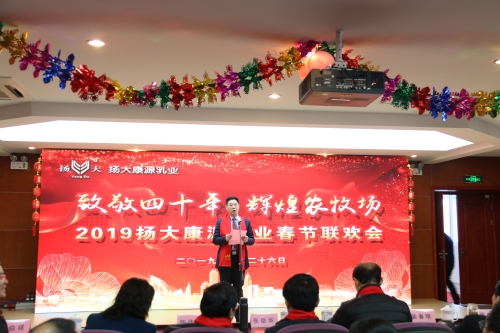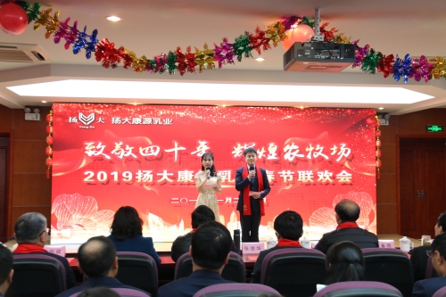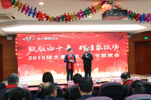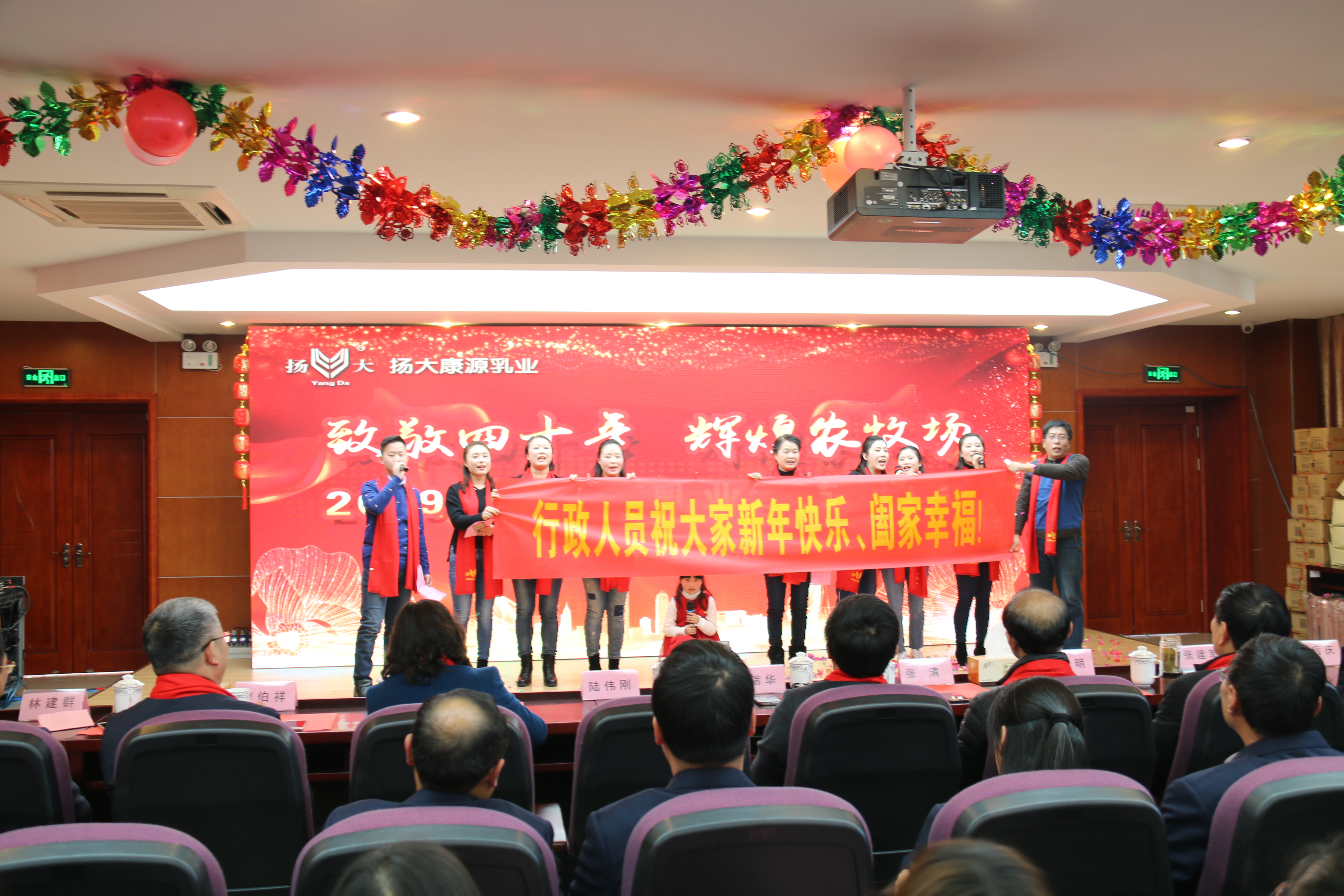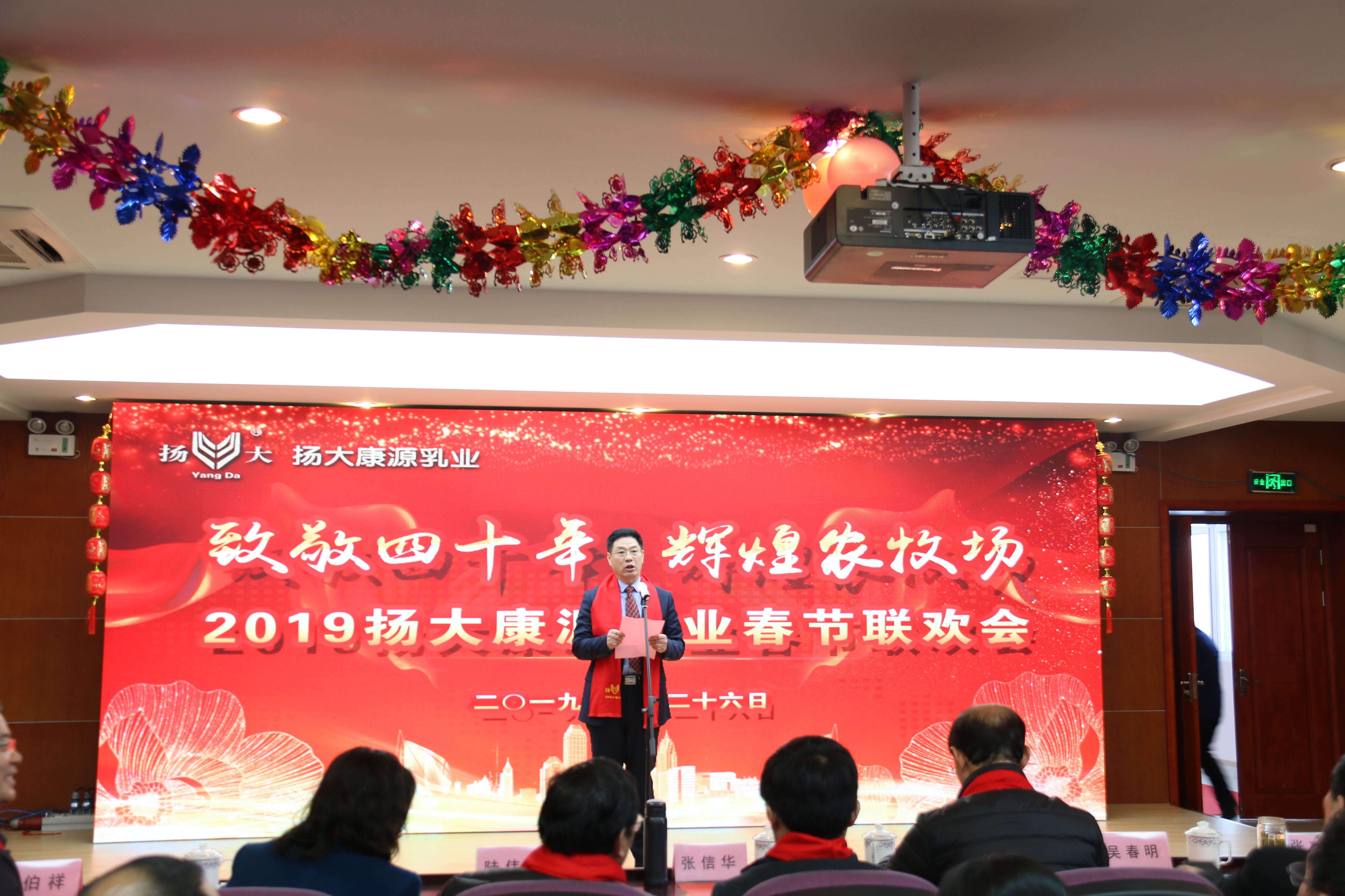 值此新春佳节来临之际,为丰富我公司员工的业余文化生活,展现员工积极向上的精神风貌,提高全体员工的凝聚力,1月26日下午,我场在南场区科技报告厅围绕“致敬四十年 辉煌农牧场”的主题举行2019扬大康源乳业春节联欢会,校党委宣传部张信华、人事处陆伟刚、教务处张清、校工会高远、后勤保障处吴春明、资产经营公司曹伯祥、场领导、扬达物业、恒邦餐饮公司负责人出席联欢会。