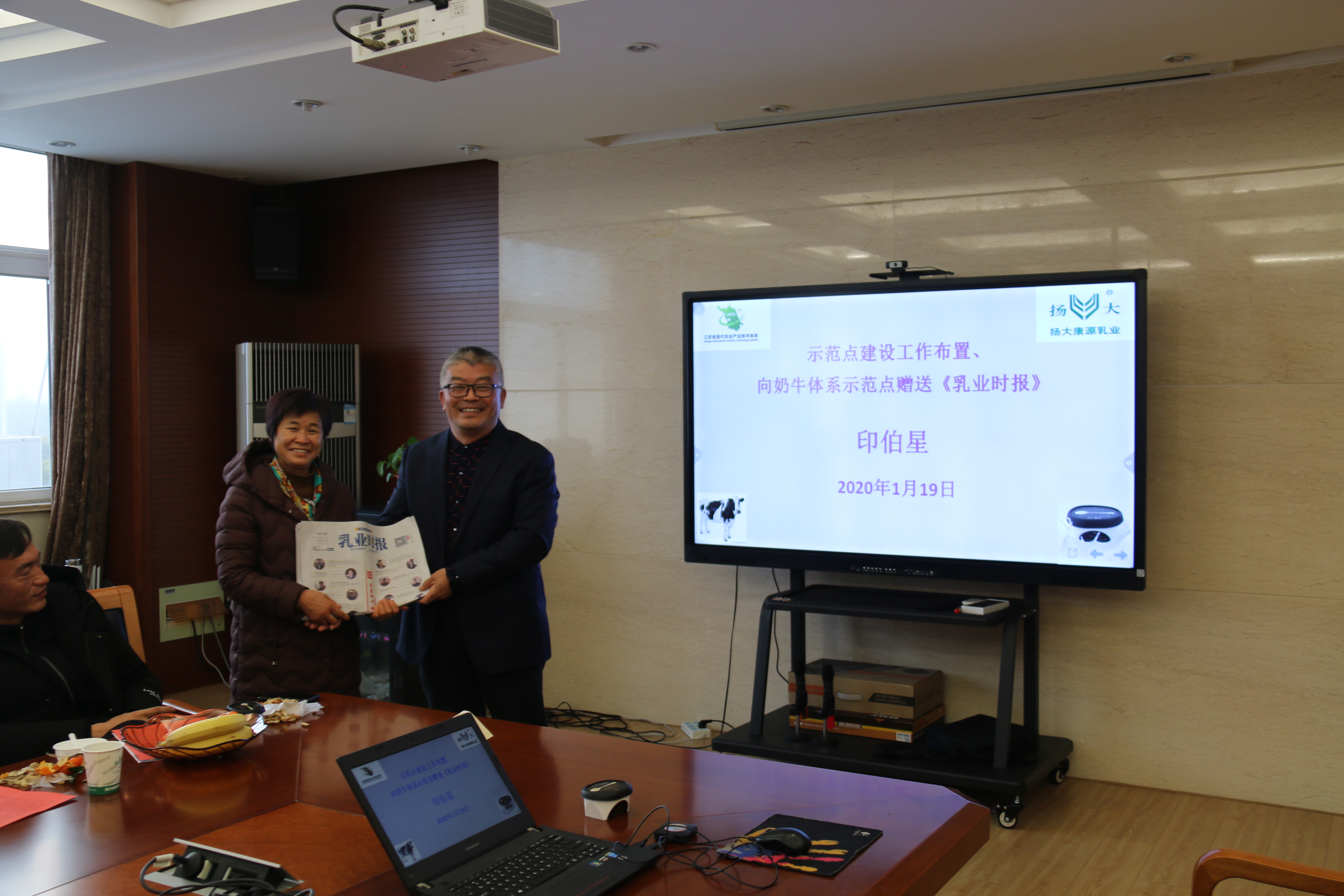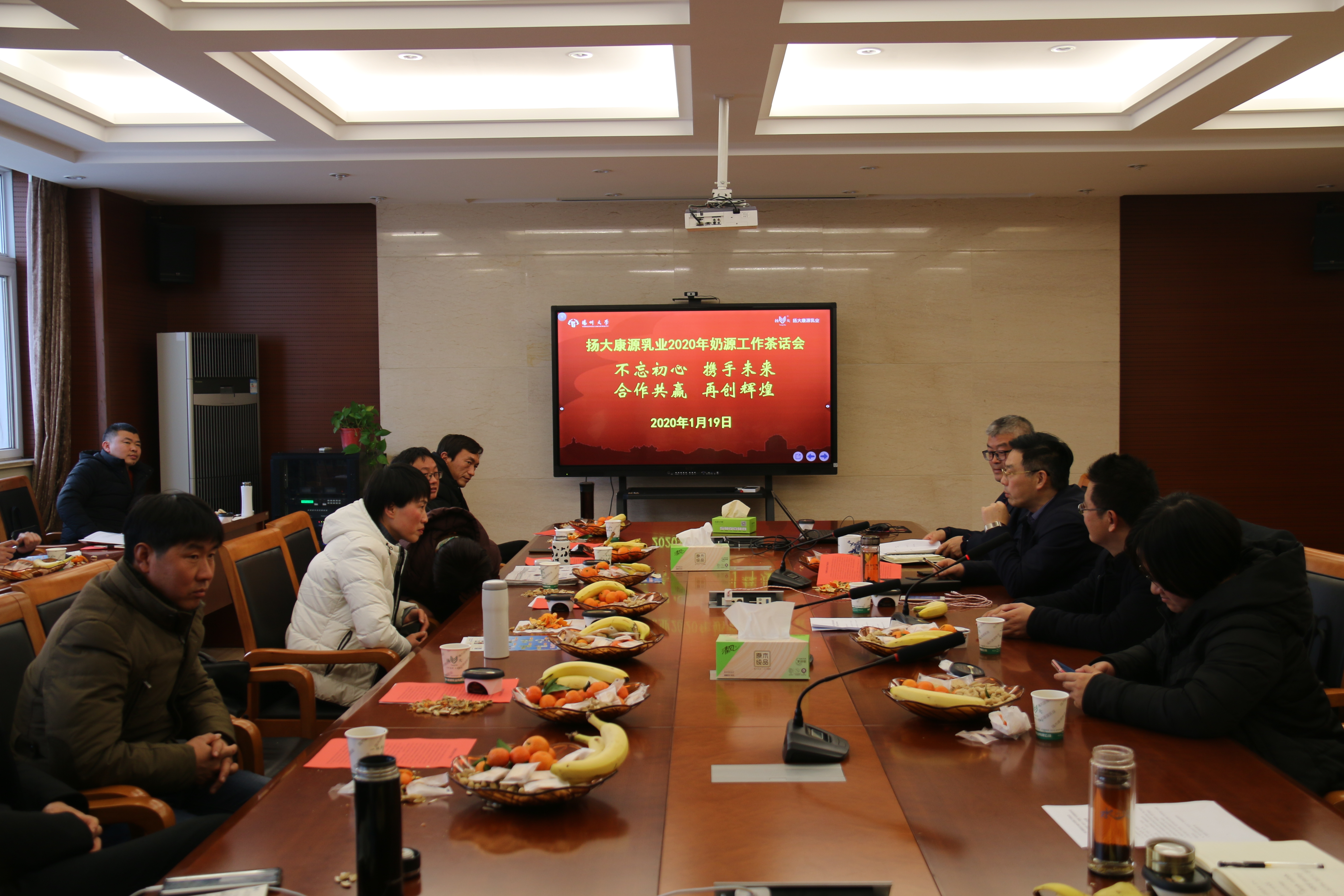 1月19日下午,我场在食品产业园场区三楼会议室举行扬大康源乳业2020年奶源工作茶话会。副场长印伯星主持茶话会。