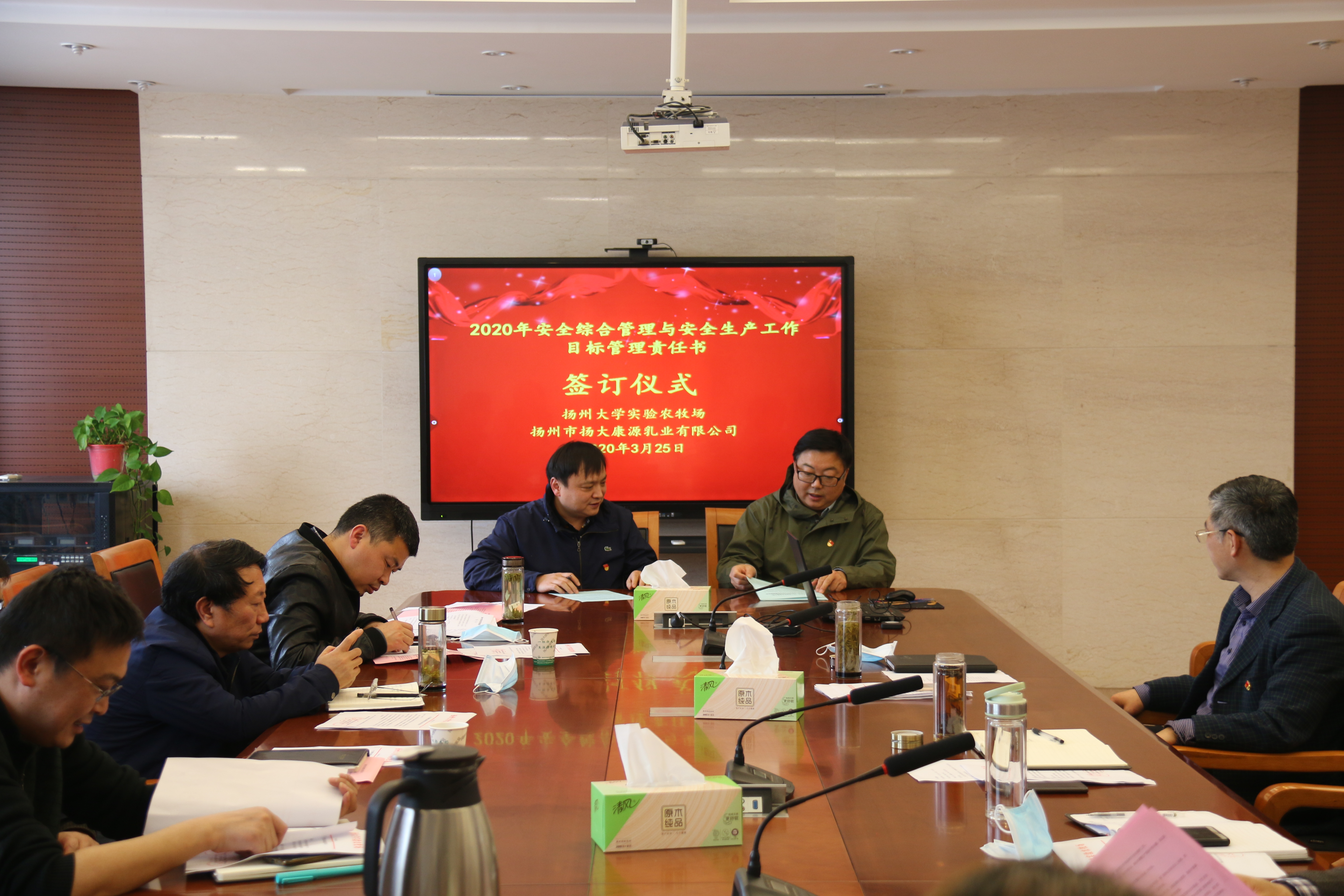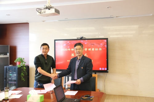 会议首先进行了各类责任书的签订。包括2020年目标管理责任书、党风廉政建设责任书、安全综合管理与安全生产工作目标管理责任书。