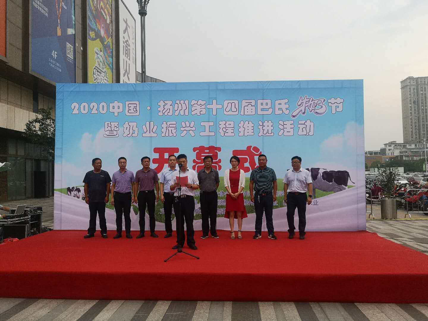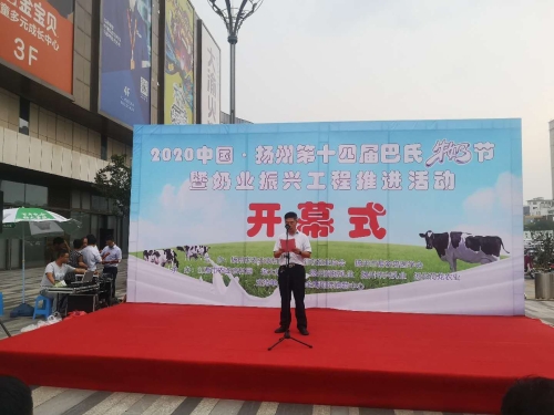 在江都金鹰生活广场,2020中国·扬州第十四届巴氏牛奶节暨奶业振兴工程推进活动开幕式顺利进行,扬州市奶业协会第三次会员大会成员参加开幕仪式,新当选的扬州市奶业协会会长、我场场长、康源乳业公司总经理林建群主持会议并致开幕词。房东升书记出席会议并讲话。活动现场,举办了乳品知识咨询、互动游戏、精彩演出等丰富多彩的活动,吸引众多消费者参与。