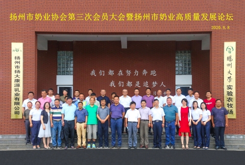 2020年8月8日,我场顺利承办扬州市奶业协会第三次会员大会、扬州市奶业高质量发展论坛、2020中国•扬州第十四届巴氏牛奶节、奶业振兴工程推进系列活动。扬州市农业农村局总畜牧兽医师徐煜锋、省奶牛产业技术体系首席专家杨章平、扬州华兴乳业有限公司总经理刘长贵、扬州润扬乳业有限公司副总经理韩蕾、各县市区畜牧兽医站负责人、各牧场负责人等参加活动。