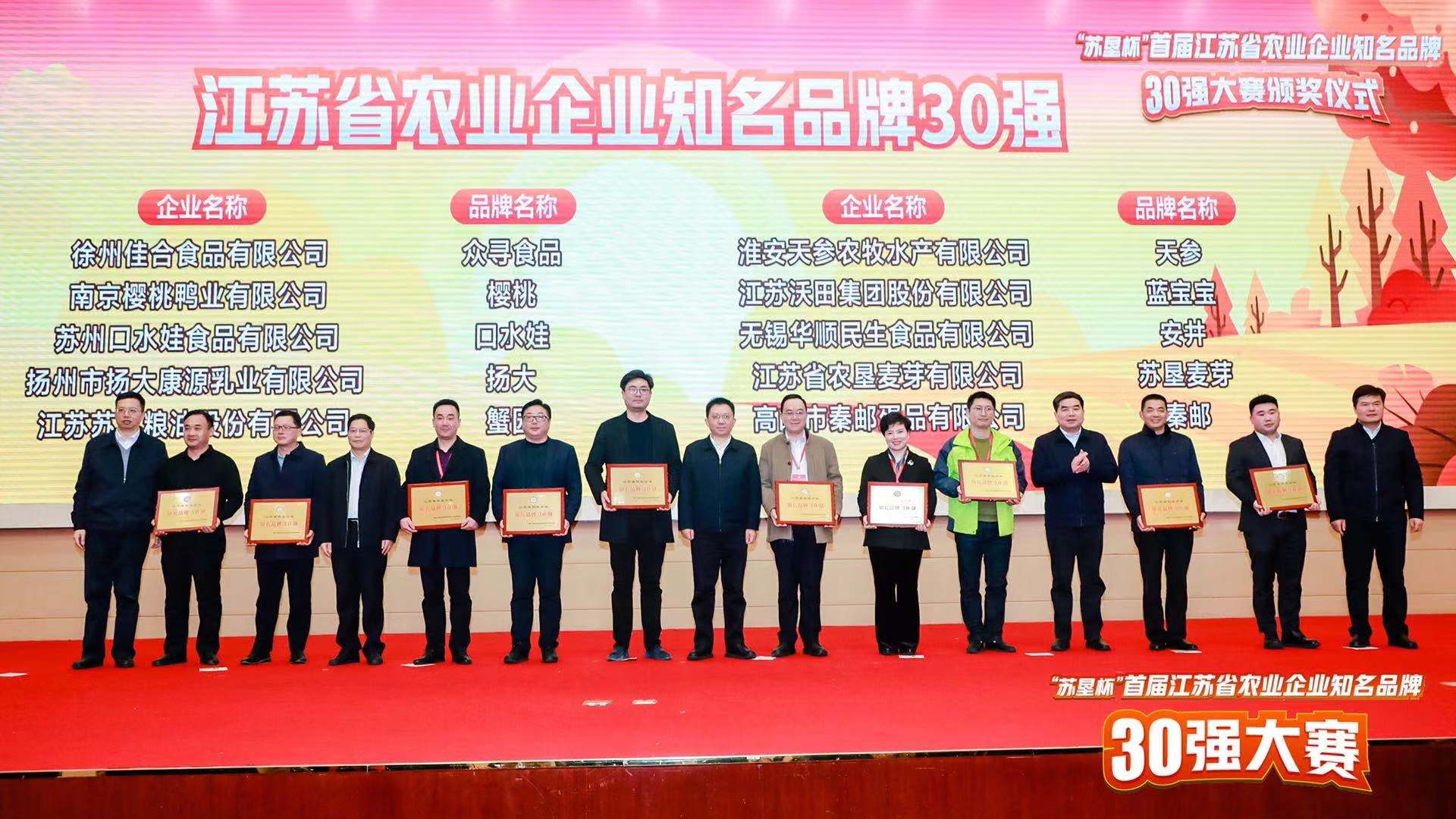 12月16日,由江苏省农业农村厅农业品牌工作领导小组办公室筹划,省农产品品牌发展中心等主办的“苏垦杯”首届江苏省农业企业知名品牌30强大赛总决赛在南京举办。经过行业评价、现场路演、专家评审、公众投票等环节,扬大康源乳业荣获首届江苏省农业企业知名品牌大赛30强称号。