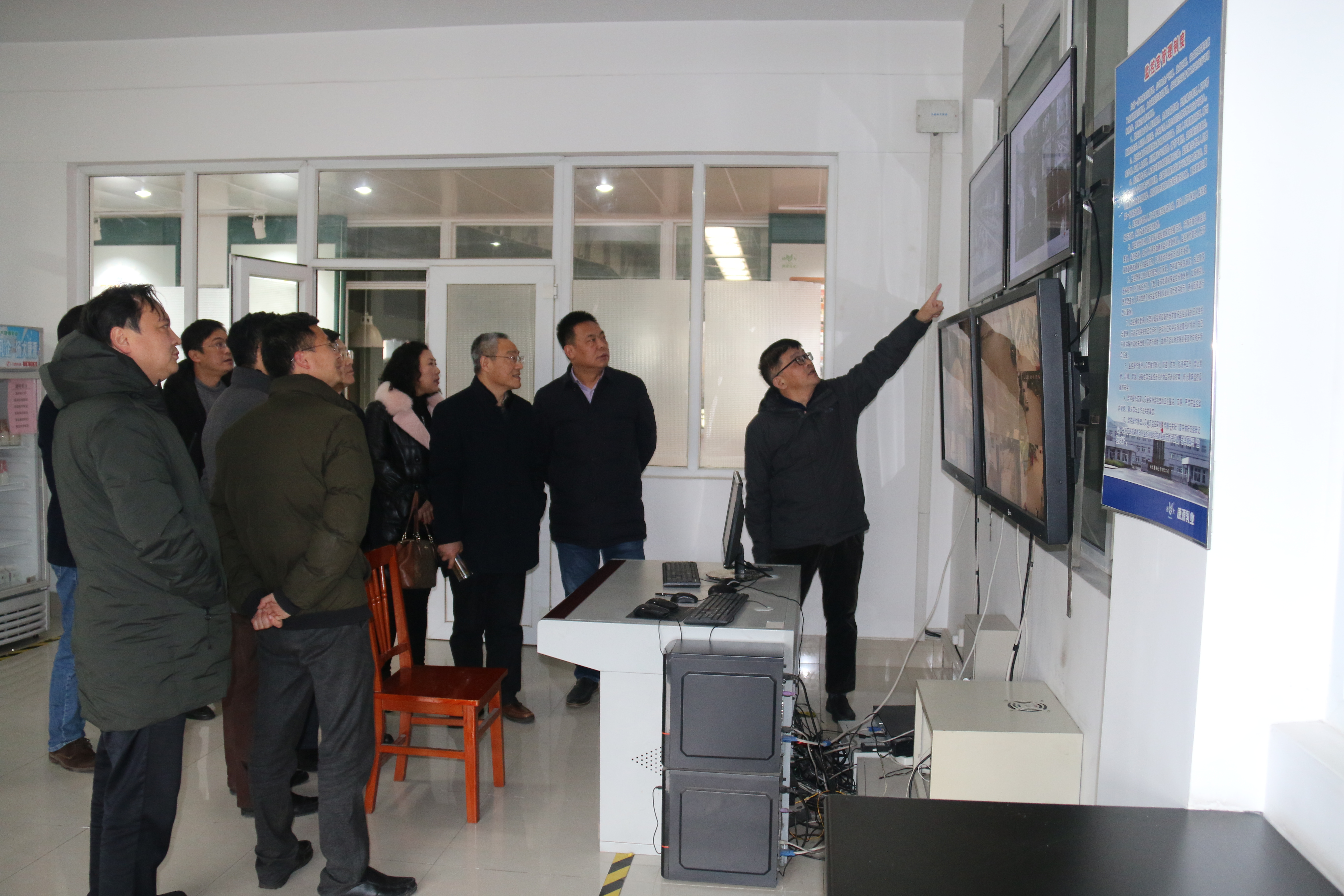 袁日进一行实地参观了康源乳业生产车间,实地在电子监控室,调阅查看公司基地奶牛养殖、饲料保障、防疫措施等视频画面,并详细询问了公司奶牛养殖情况。
