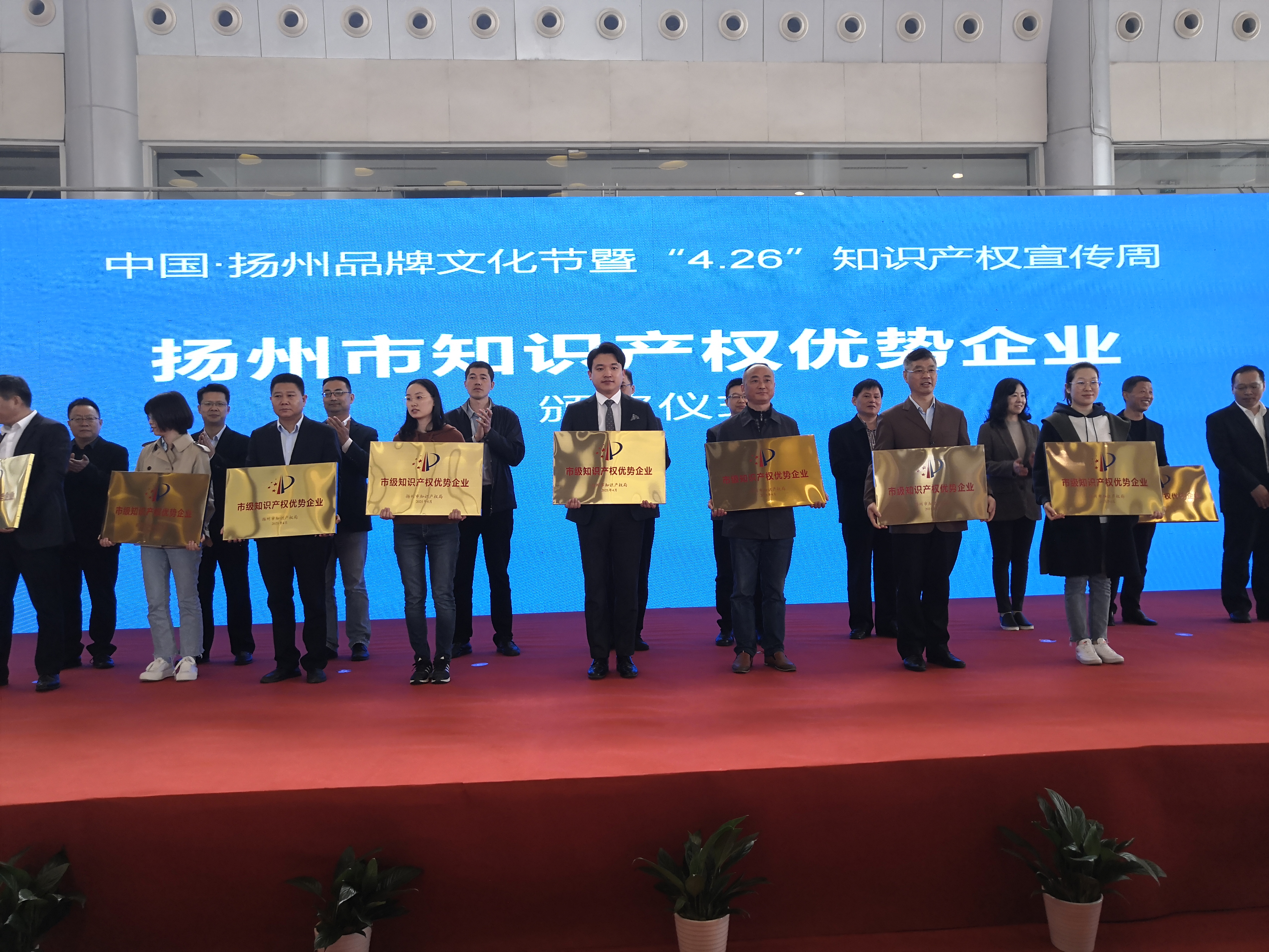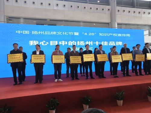 “好地方”诞生“好品牌”,“好品牌”助力“好地方”。4月23日上午,由扬州市政府主办的首届中国•扬州品牌文化节暨“4.26” 知识产权宣传周活动开幕式在扬州国展中心举行。本次活动,集中展示了100多家扬州名特优品牌、地理标志品牌,为消费者呈现了一场品牌盛宴。活动开幕式现场进行了颁奖仪式,我场康源乳业公司荣获“扬州市知识产权优势企业”称号,“扬大”品牌获“我心目中的扬州十佳品牌”称号。我场场长、康源乳业公司总经理林建群出席活动开幕式并代表公司领取荣誉铜牌。