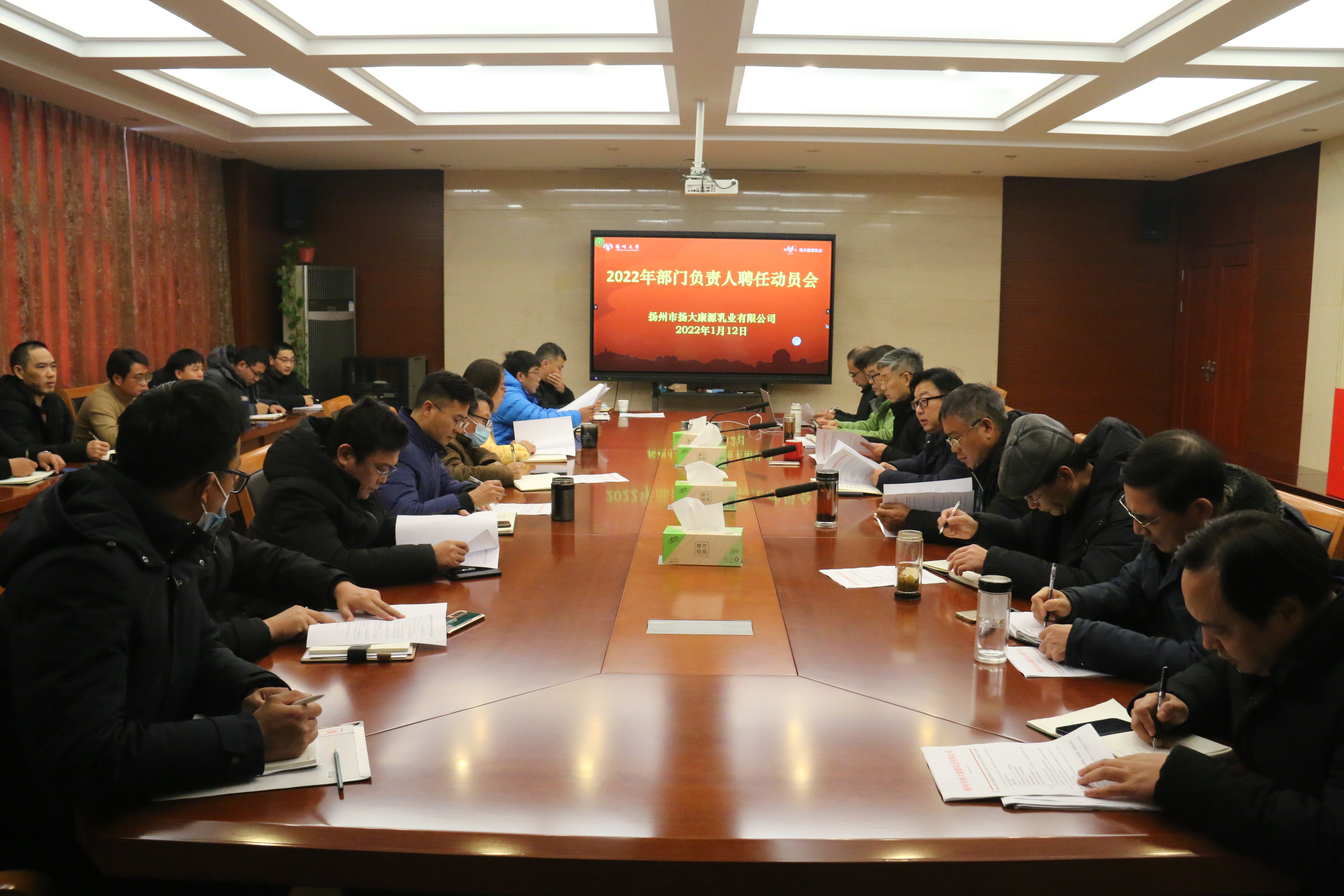 1月12日下午,我场在康源乳业会议室召开2022年部门负责人聘任动员会,场党总支书记、聘任工作领导小组组长房东升主持会议。全体聘任工作领导小组成员、全体科长、部门副职以上人员参加会议。