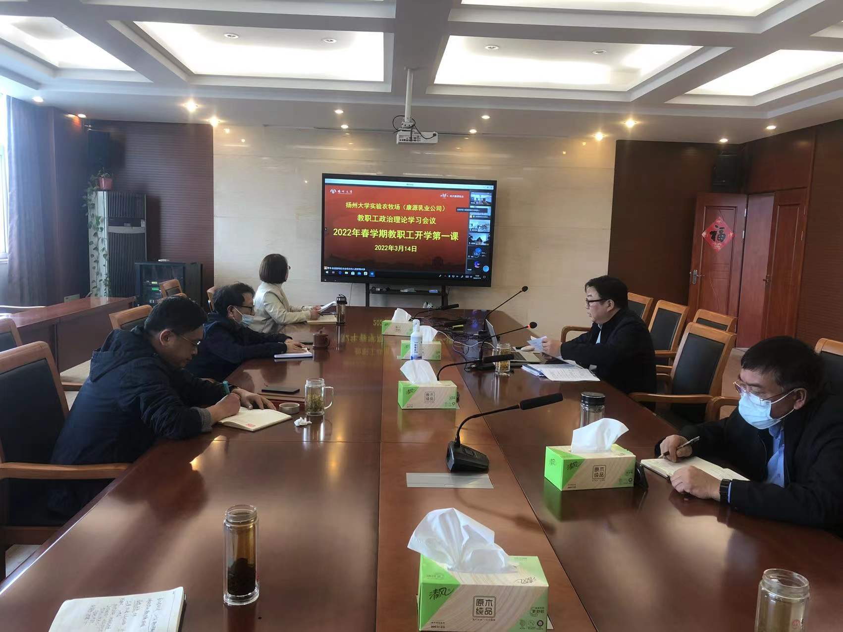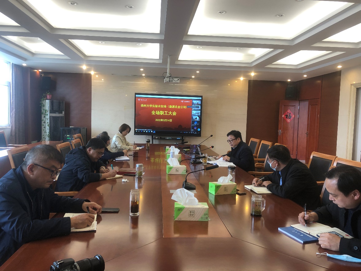 3月14日下午,我场以视频方式召开全场职工大会,房东升书记主持会议并讲话。全体场领导出席会议。