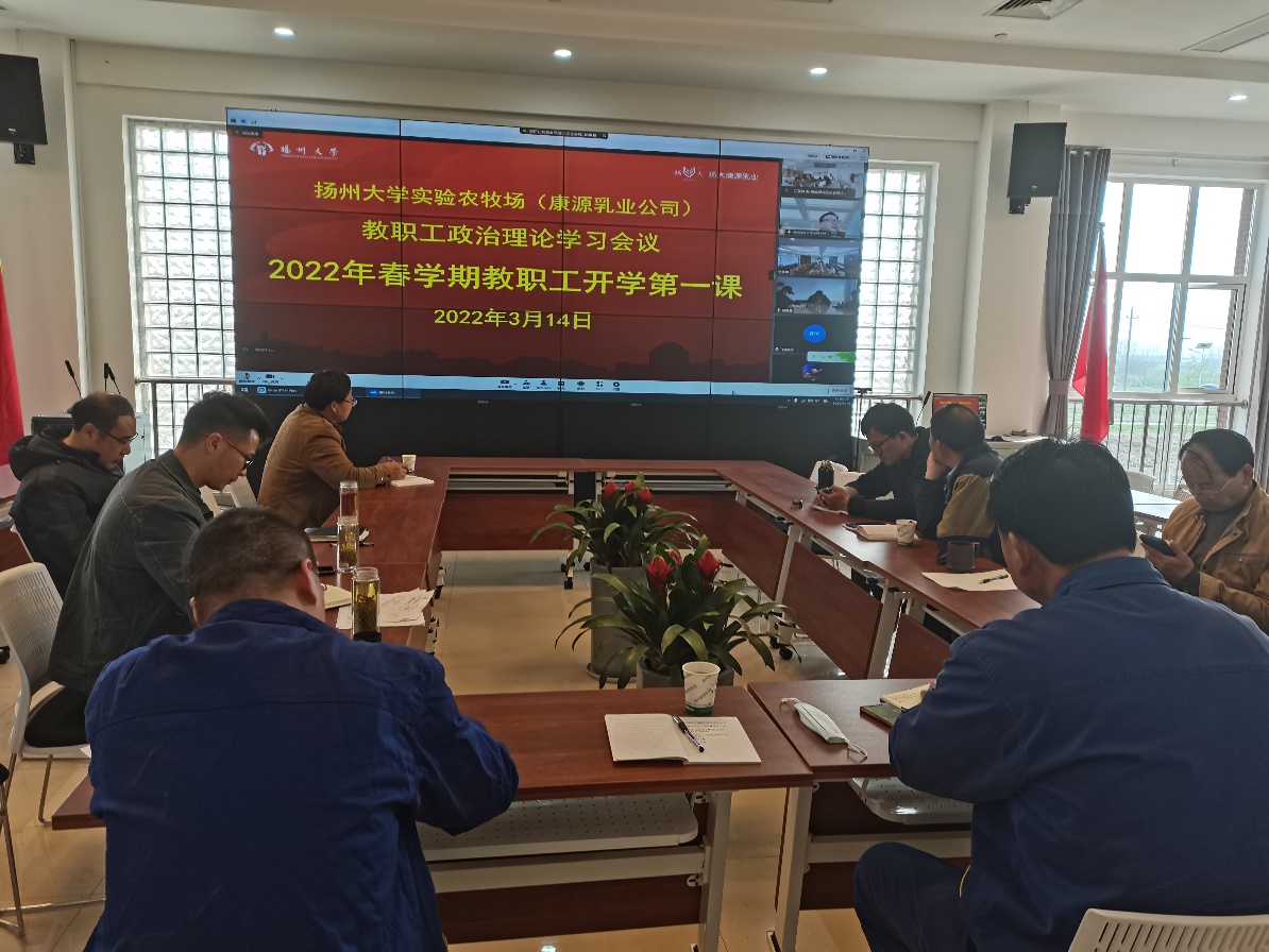 房东升书记带领与会人员围绕“传承时代精神、续写百廿辉煌”的主题开展2022年“信心•使命• 担当”职工开学第一课学习。房书记分别从“传承时代精神,争当勇立潮头的奋斗者”、“勇担育人使命,誓当学生成长的大先生”、“厚植扬大情怀,乐当学校发展的建功者”三个方面进行领学。房书记要求,全体人员更加紧密地团结在以习近平同志为核心的党中央周围,在省委、校党委的坚强领导下,以更高的站位、更大的格局、更新的思维,齐心向未来,推动我场各项事业高质量蓬勃发展,以优异的成绩迎接党的二十大胜利召开。房书记同时布置疫情防控相关工作。