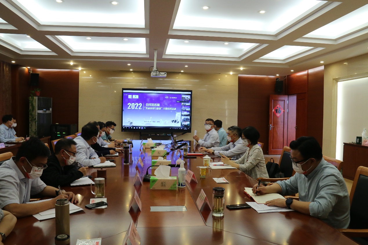 “健康中国 营养先行”! 在2022年世界牛奶日暨全民营养周到来之际,为深入贯彻落实国务院《健康中国行动(2019-2030年)》《国民营养计划(2017-2030年)》,宣传贯彻《中国居民膳食指南(2022)》核心准则,5月20日,我场康源乳业公司举办了“乳品营养与健康”线上交流活动。印伯星副场长主持活动,全体场领导参加了活动。