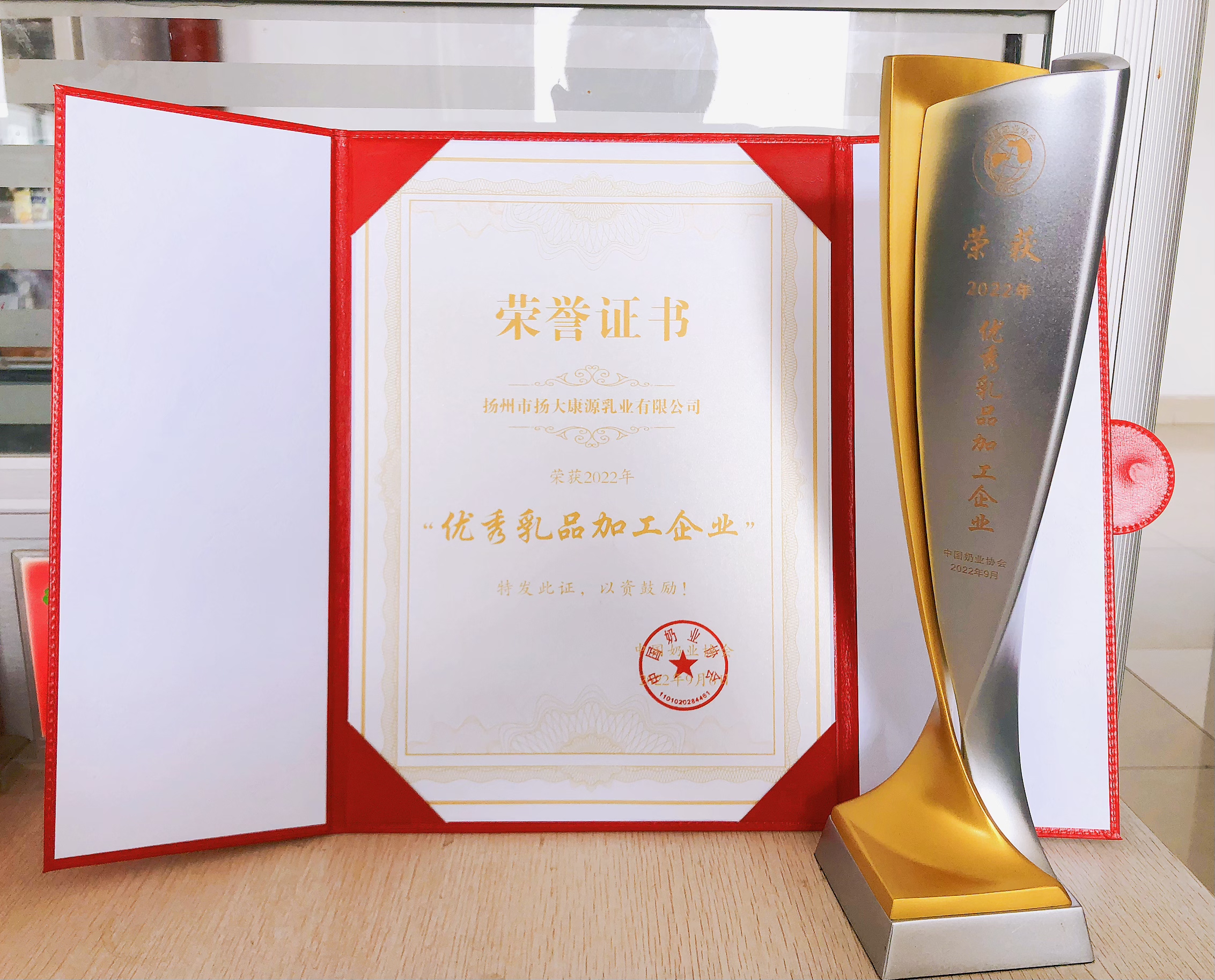 我场康源乳业公司荣获中国奶业协会2022年“优秀乳品加工企业”称号