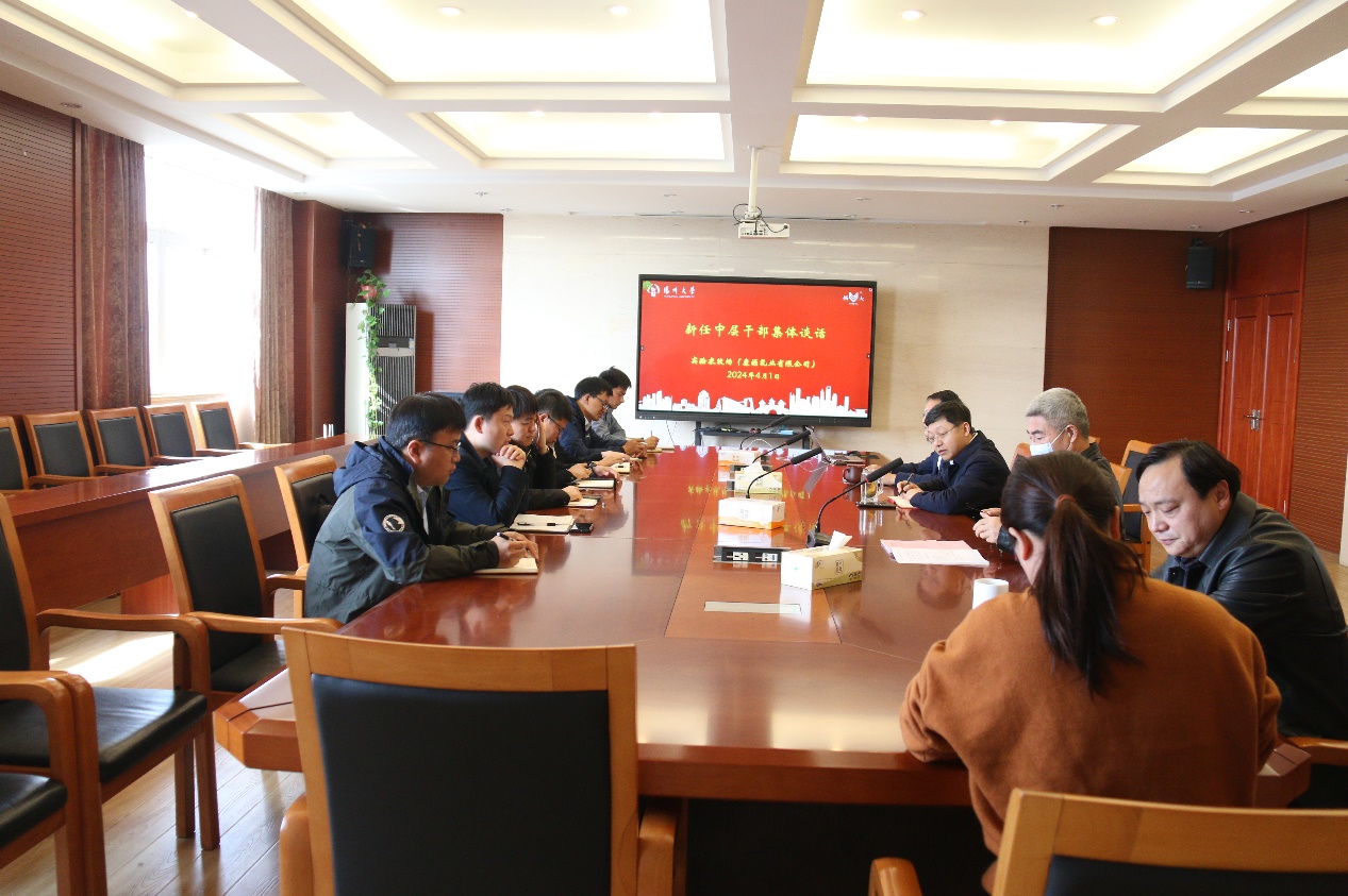 4月1日上午,我场在食品产业园场区三楼会议室组织召开新提任中层干部集体谈话,马雷书记主持会议,郑云场长、周建华副场长兼副书记出席会议。