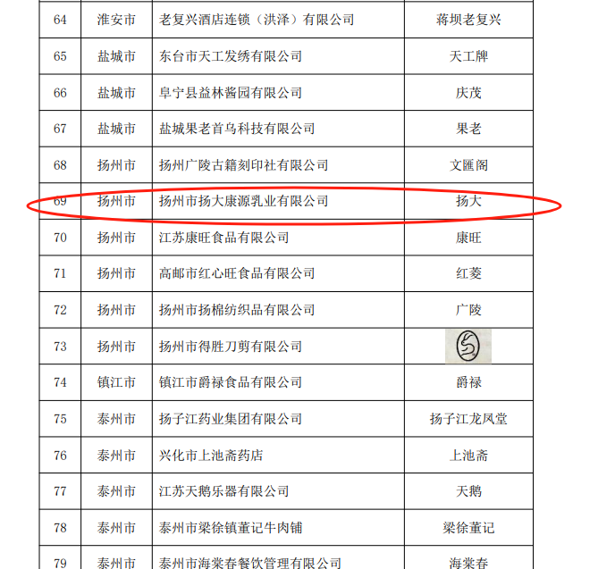 日前,江苏省商务厅、江苏省文化和旅游厅、江苏省市场监督管理局、江苏省文物局、江苏省知识产权局联合发布了《省商务厅等5部门关于公布第三批江苏老字号名录的通知》,我场康源乳业有限公司“扬大”品牌成功入选,获评“江苏老字号”称号。