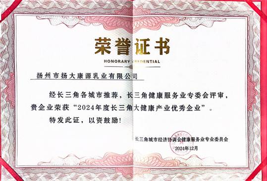 公司将以荣获“2024年长三角大健康产业优秀企业”称号为契机,依托扬州大学和国家奶业科技创新联盟等平台优势,不断发挥示范引领作用,加强科技创新,优化产品结构,为推动长三角地区大健康产业产、学、研协作与发展贡献力量。