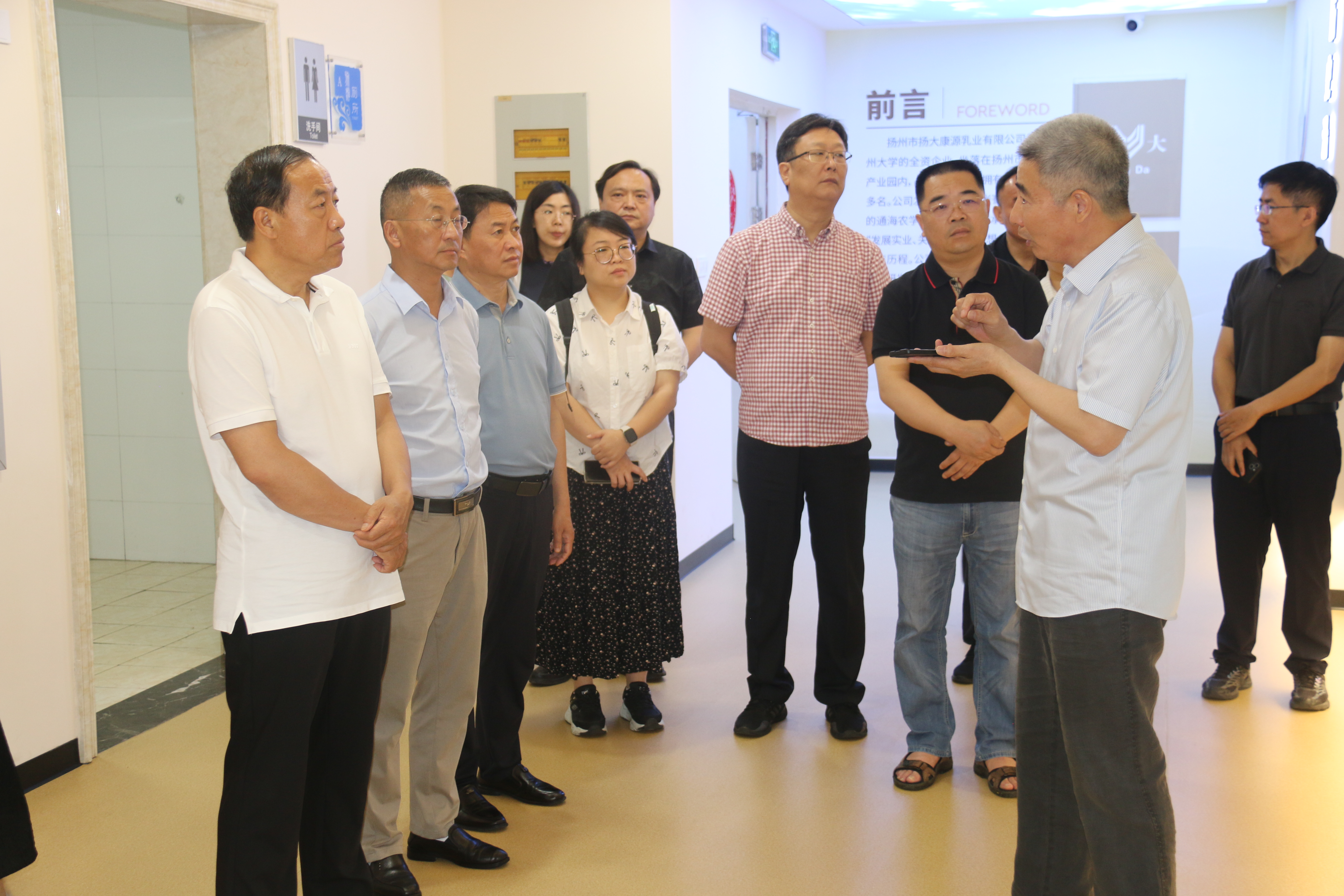 6月9日上午,贵州省黔东南州政协副主席唐斌一行来场调研指导。扬州市政协经济科技委员会主任陈荣进,广陵区政协副主席庄绪梅、区政协经科农委主任姜志,食品产业园党委副书记、管理办副主任陈沿明,场党总支书记马雷等陪同调研。