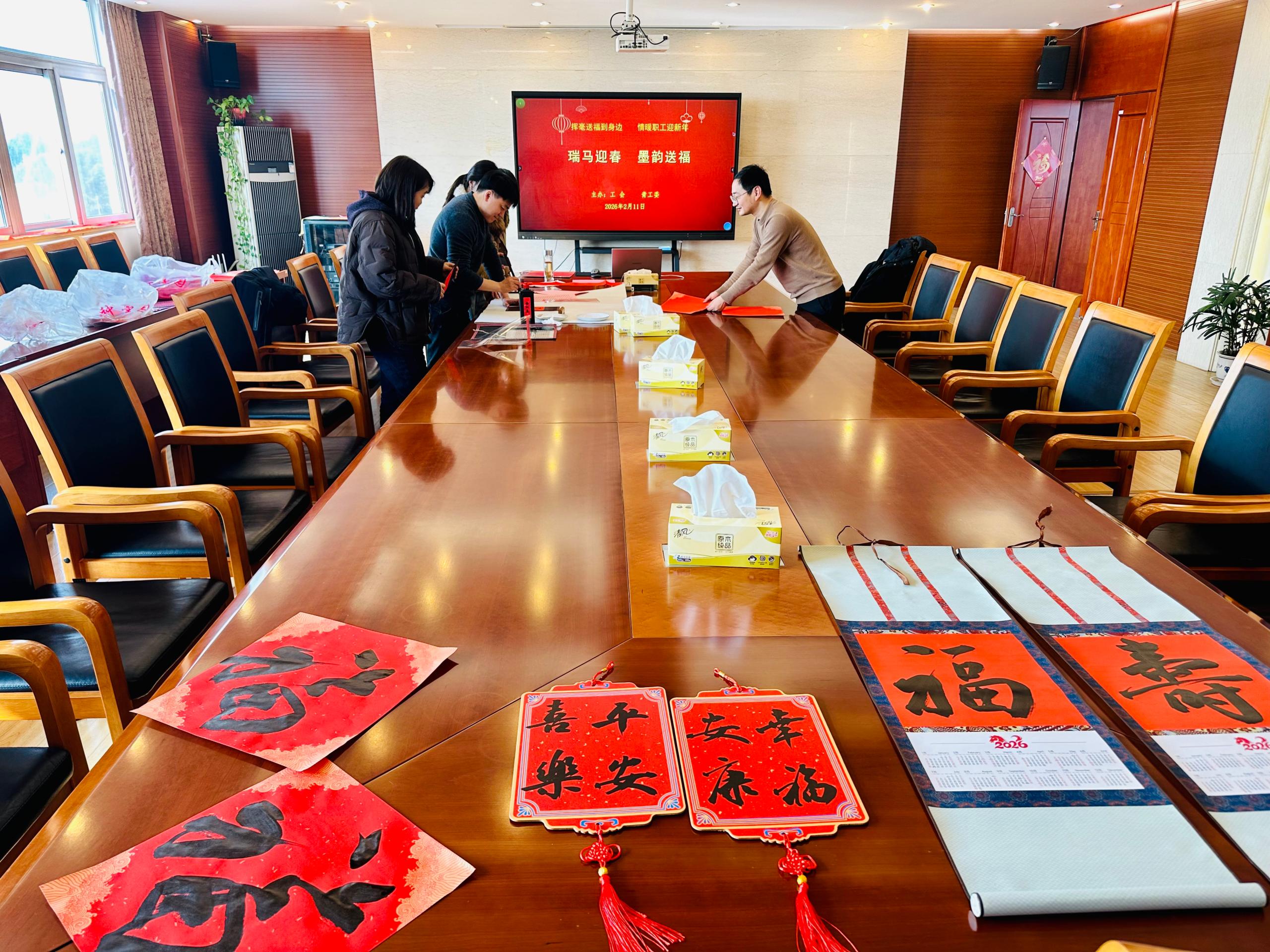 挥毫送福到身边,情暖职工迎新年。2月11日上午,在马年春节即将到来之际,实验农牧场工会、青工委开展“瑞马迎春 墨韵送福”写春联、送福字活动。
