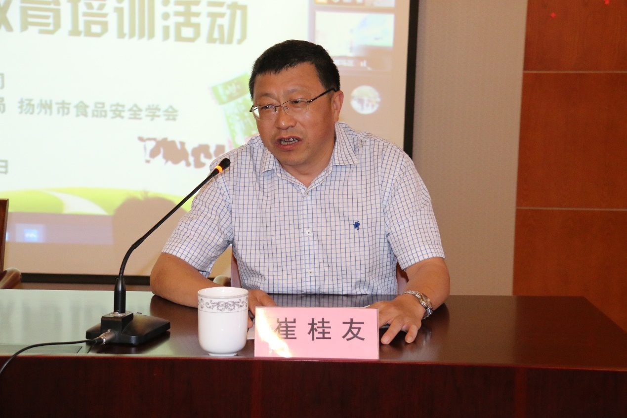 崔桂友教授对扬大康源乳业开展好本次活动讲了“三个一”:一是“一个赞”,本次活动开辟了扬州市食品安全宣传活动的一个典范,扬大康源乳业一直围绕食品营养和食品安全开展相关工作,开发的系列产品哺育了地方市民几代人;二是“一条信息”,即国家食安委已经受理扬州市创建国家食品安全示范城市申请,未来扬州市将进一步加强基层监督管理和落实企业主体责任,并围绕创建工作持续开展特色工作;三是“一点期望”,期望扬大康源乳业在食品安全宣传、安全生产、质量管理、科技创新等方面拉高线,要做大做强,做共治共享食品安全的典范。