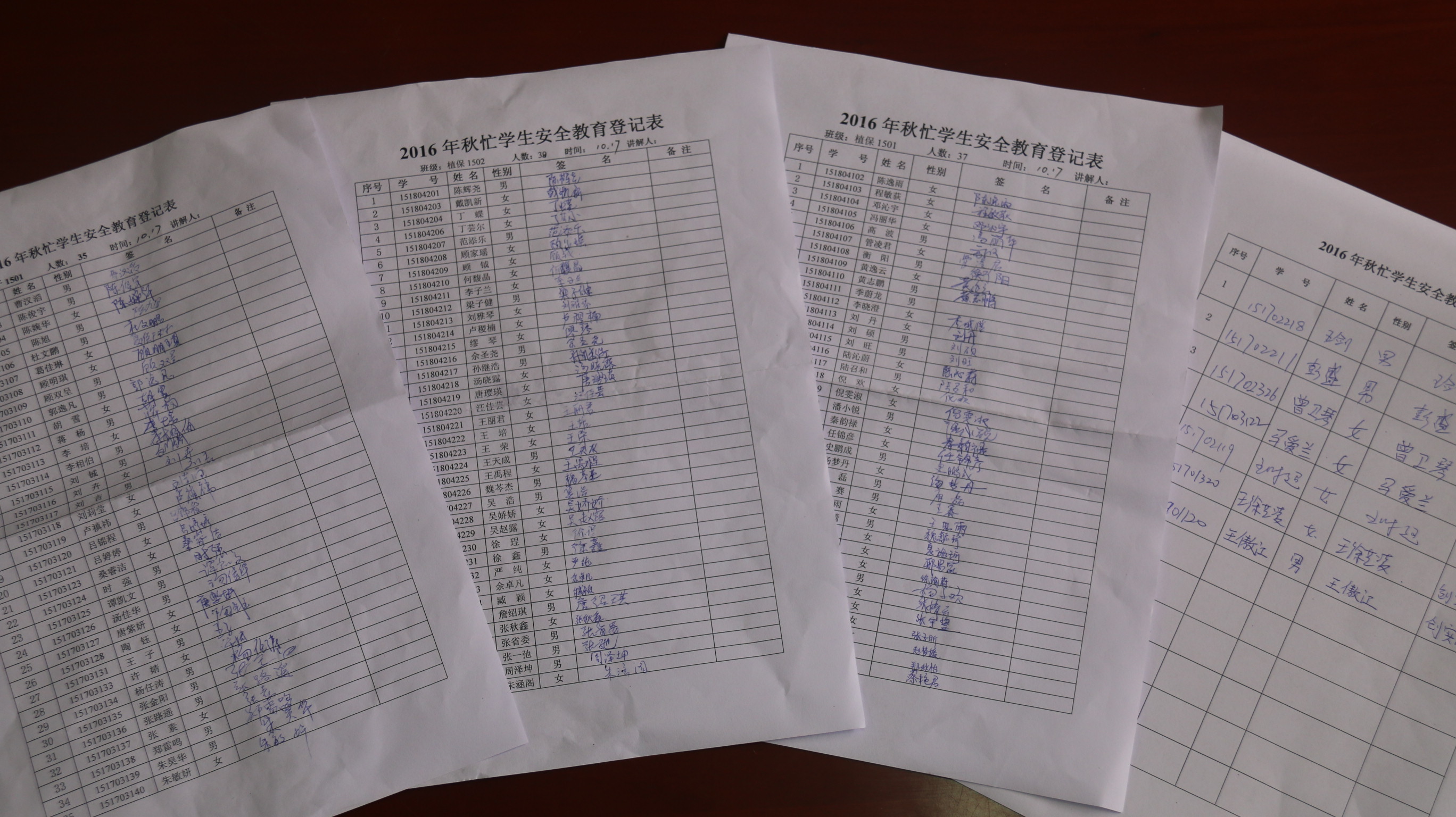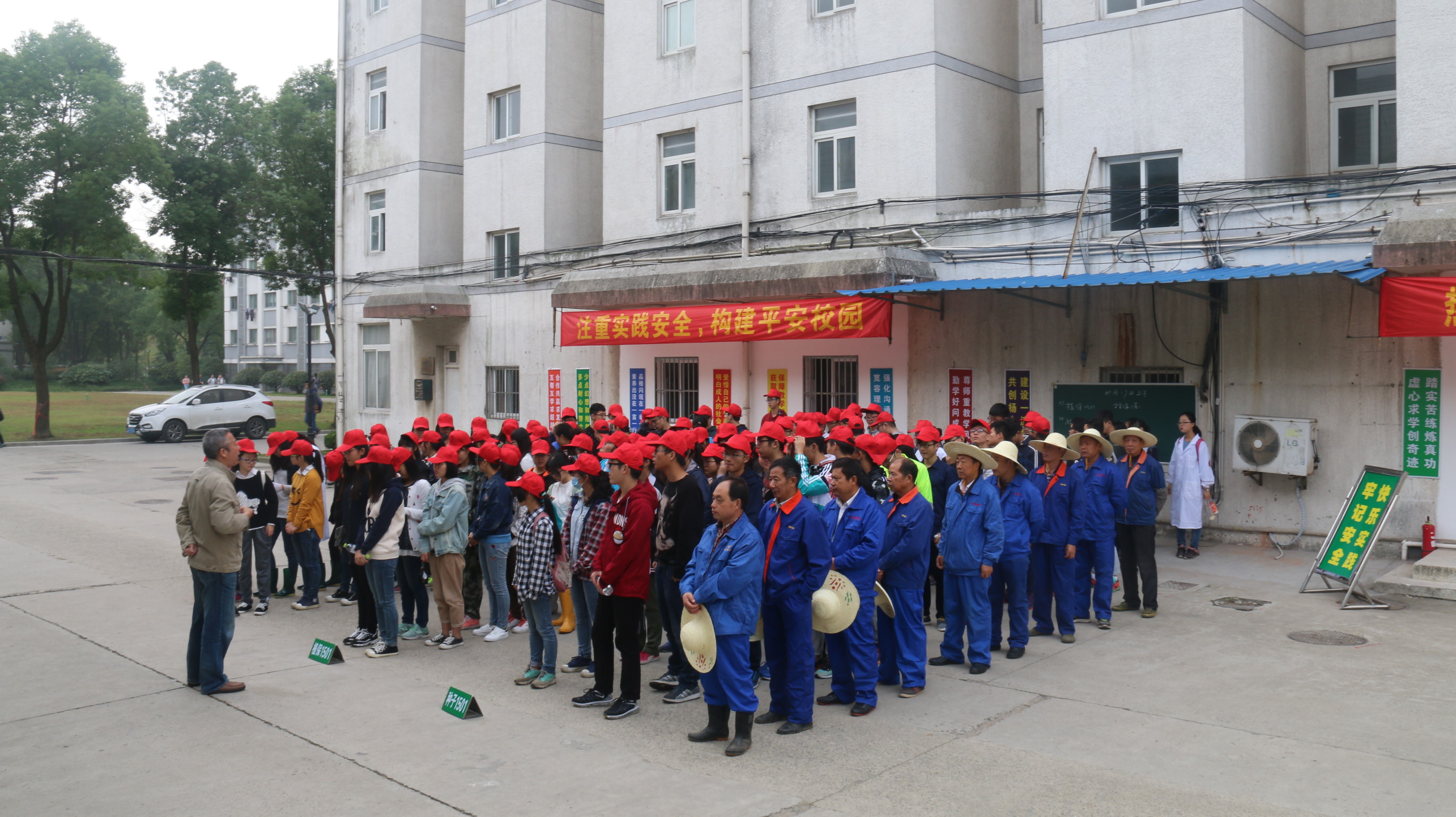 2016年度学生秋忙生产实践工作从10月17日正式在文汇路校区举行,100多名园艺与植保学院及农学院的学生参加为期六天的第一周实践活动。为确保实践工作有序和安全进行,每位同学均在安全教育登记表上签字。秋忙实践指导小组特地邀请文汇路校区医务中心的张士健主任医师为同学及本场职工集中进行了一次安全防护知识的辅导,秋忙实践指导小组副组长李国生给同学和职工进行了安全知识的培训。