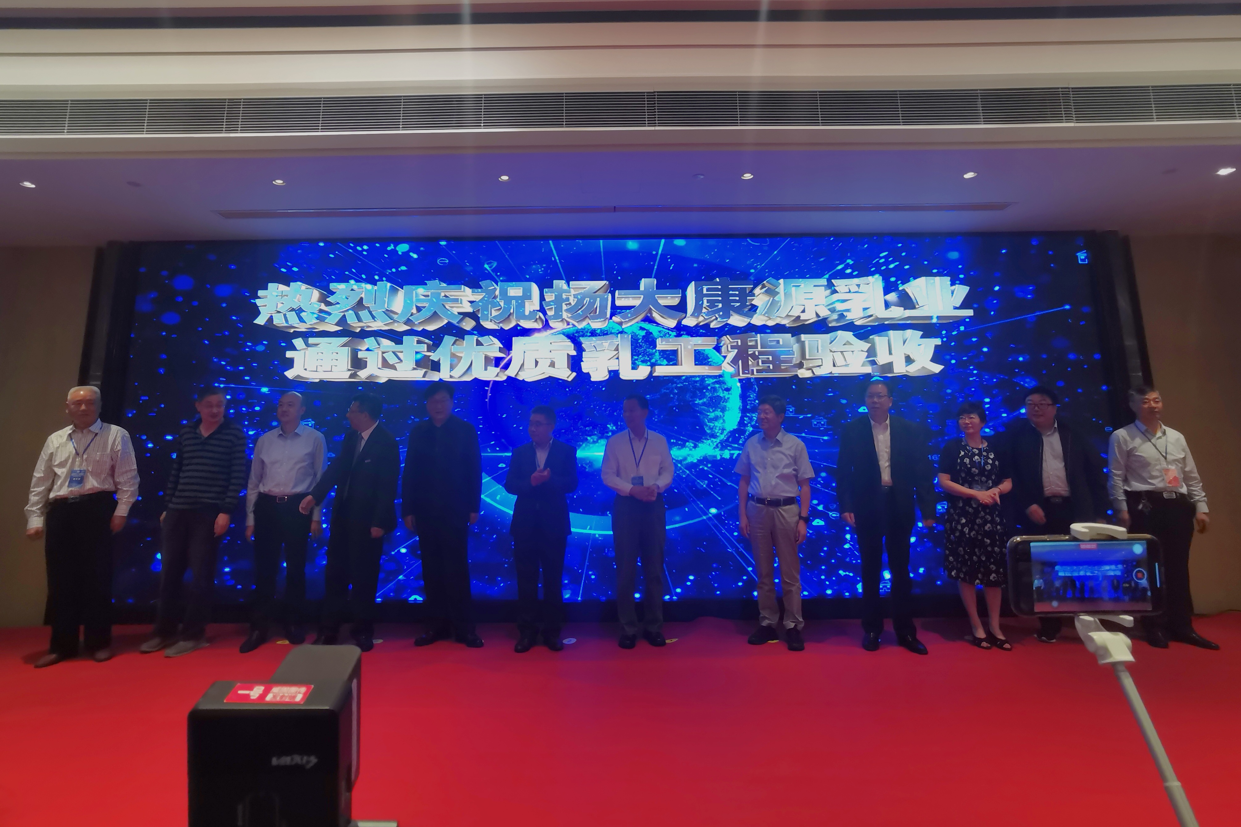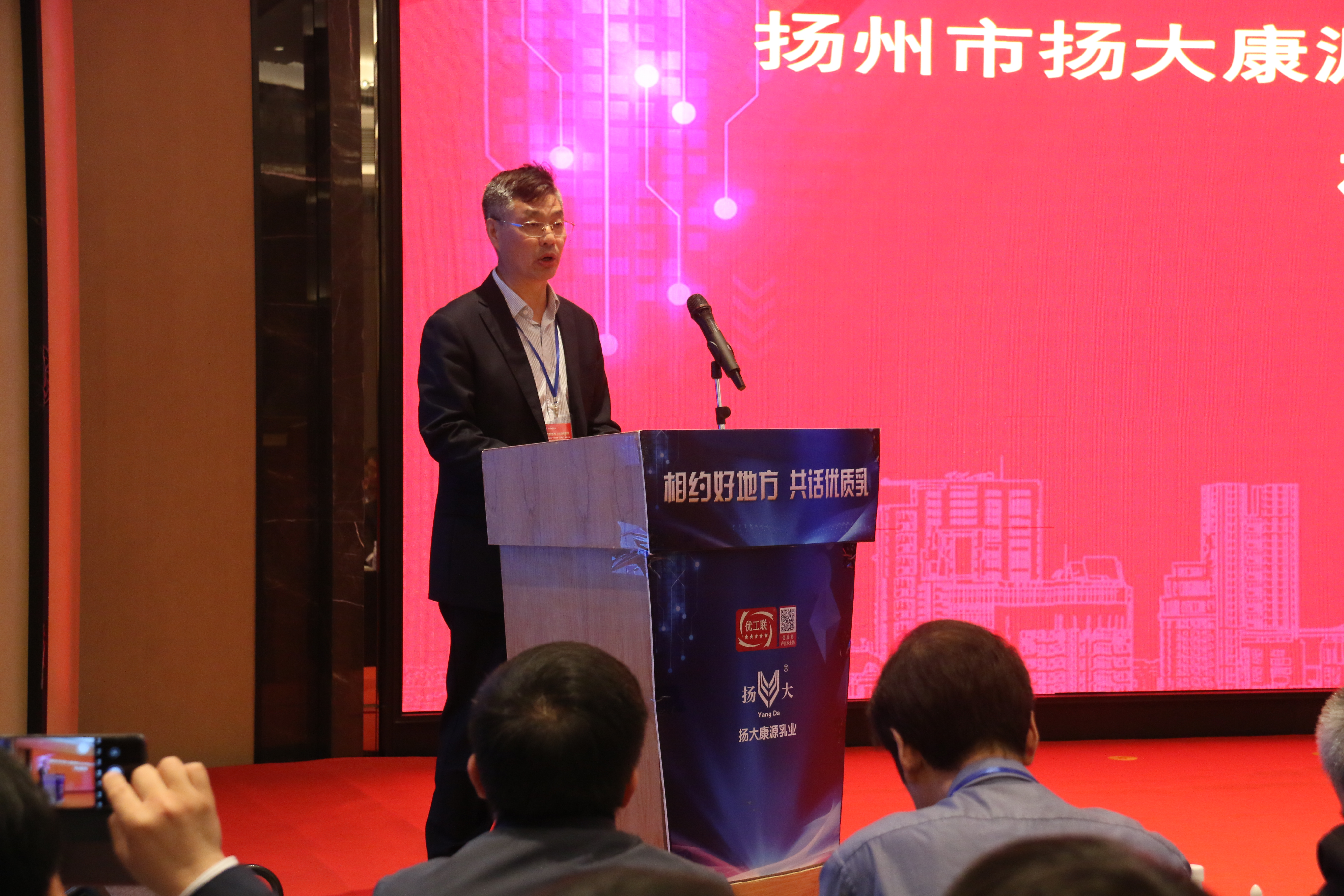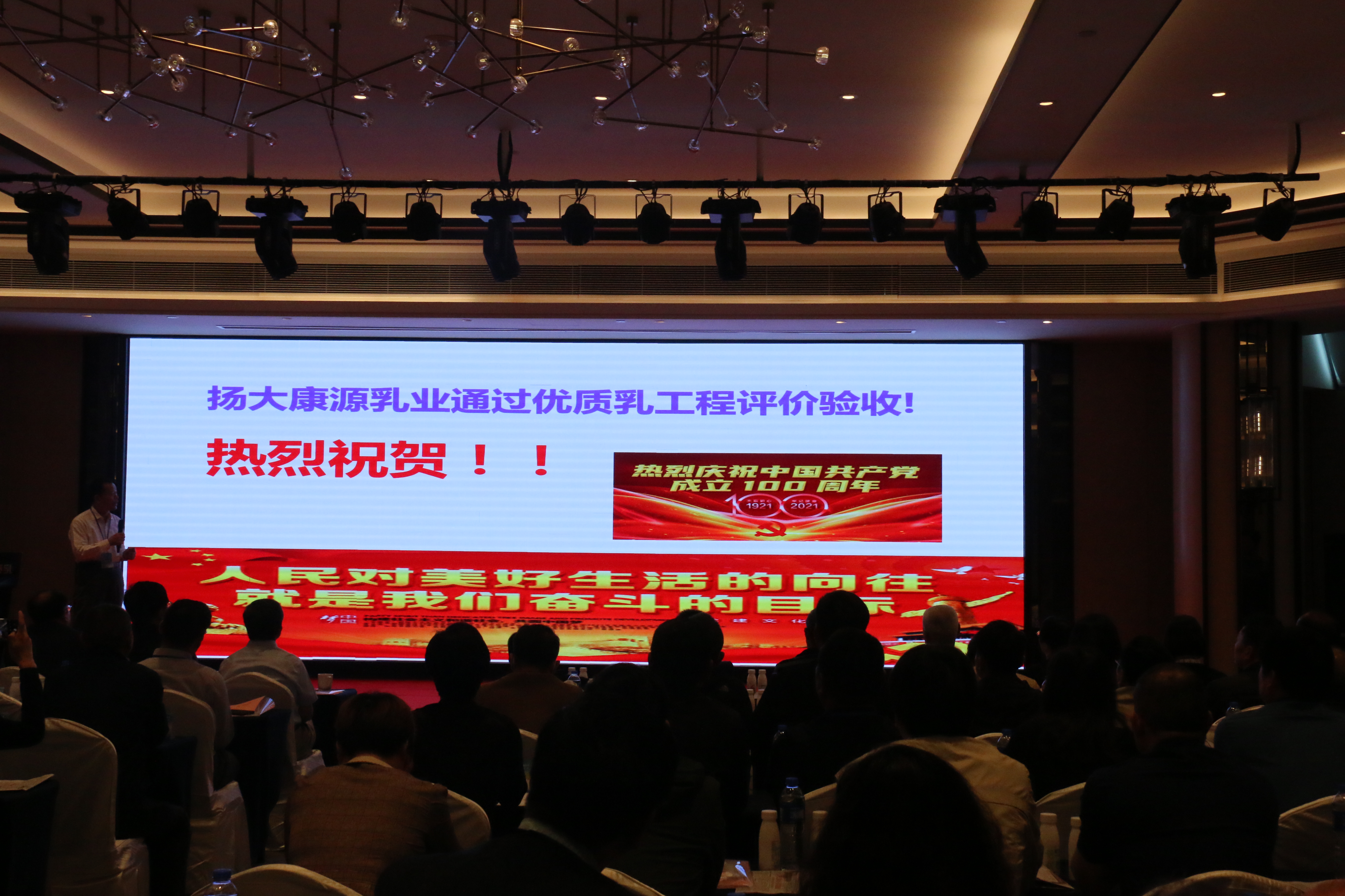 活动中,洪涛、邵明君、丁一、袁日进分别致辞,王加启理事长作主旨报告:优质乳助力健康中国,介绍了扬大康源乳业优质乳创建情况并宣布扬大康源乳业优质乳鲜牛奶通过优质乳工程验收;王加启理事长、邵明君副秘书长分别向扬大康源乳业授牌;林建群总经理代表公司接受铜牌并致辞。