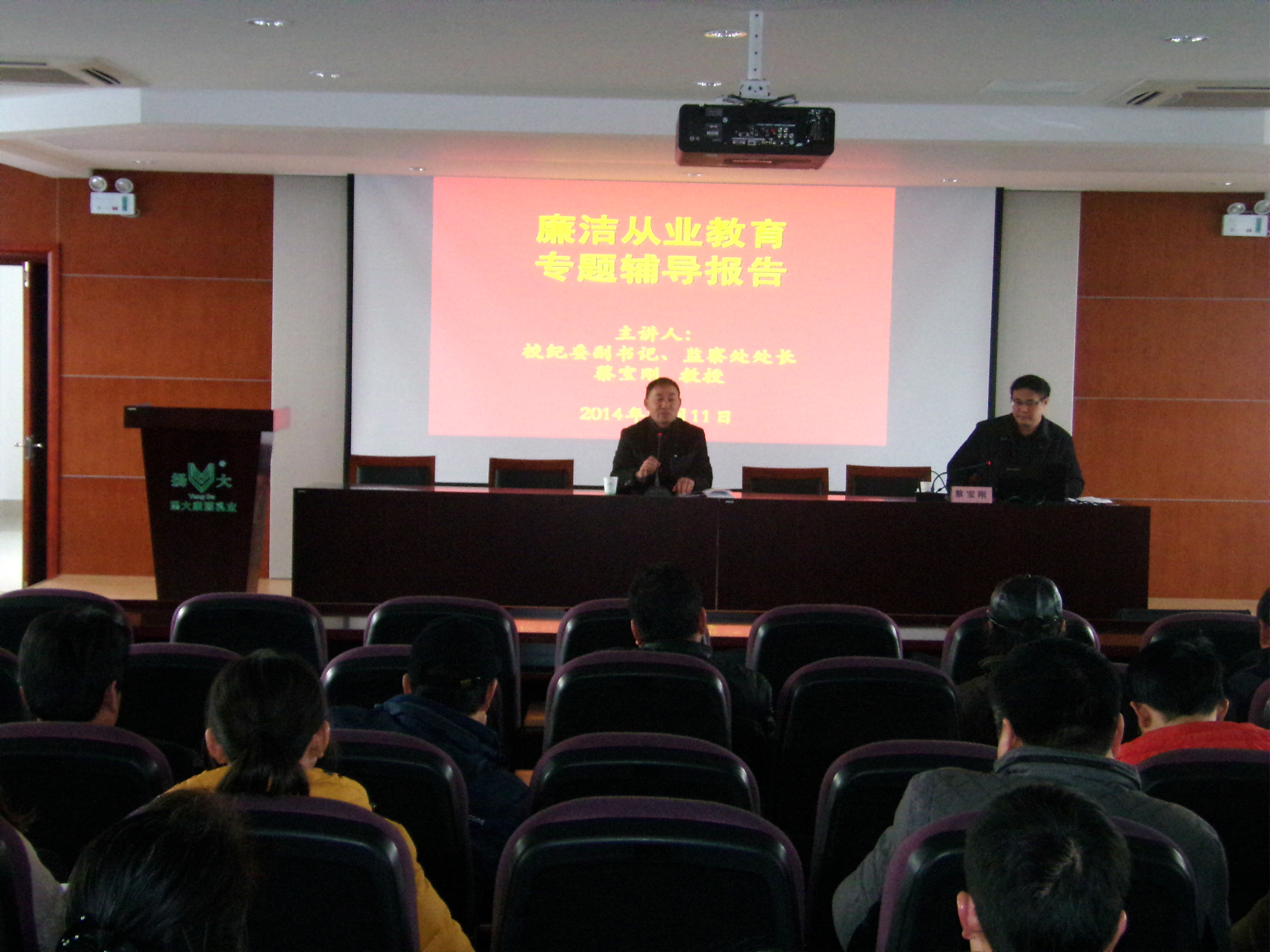校纪委副书记蔡宝刚作廉洁从业教育辅导报告