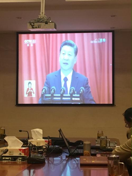 10月18日上午9点,万众瞩目的中国共产党第十九次全国代表大会在北京人民大会堂隆重开幕。我场组织全体党员、入党积极分子、团支部委员、青工委委员在南场区三楼中会议室集中收看了现场直播。在场同志满怀着期待和喜悦之情,认真收看十九大开幕盛况,聆听和学习了习近平总书记代表中国共产党第十八届中央委员会所作的报告。