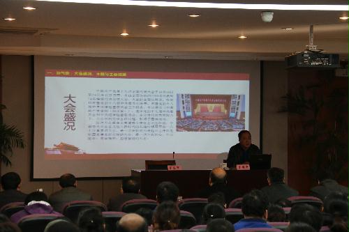 佘教授的报告围绕新气象、新成就、新时代、新思想、新矛盾、新目标、新要求等七个方面对党的十九大主题、习近平新时代中国特色社会主义思想的历史地位和丰富内涵、党的十八大以来党和国家事业发生的历史性变革;中国特色社会主义进入新时代我国社会主要矛盾的变化以及新时代中国共产党的历史使命等方面作了阐述。报告后,张书记强调我们一定不忘初心,牢记使命,认真学习和贯彻党的十九大精神,并用党的十九大精神来指导工作,为单位的事业发展不懈进取努力奋斗。