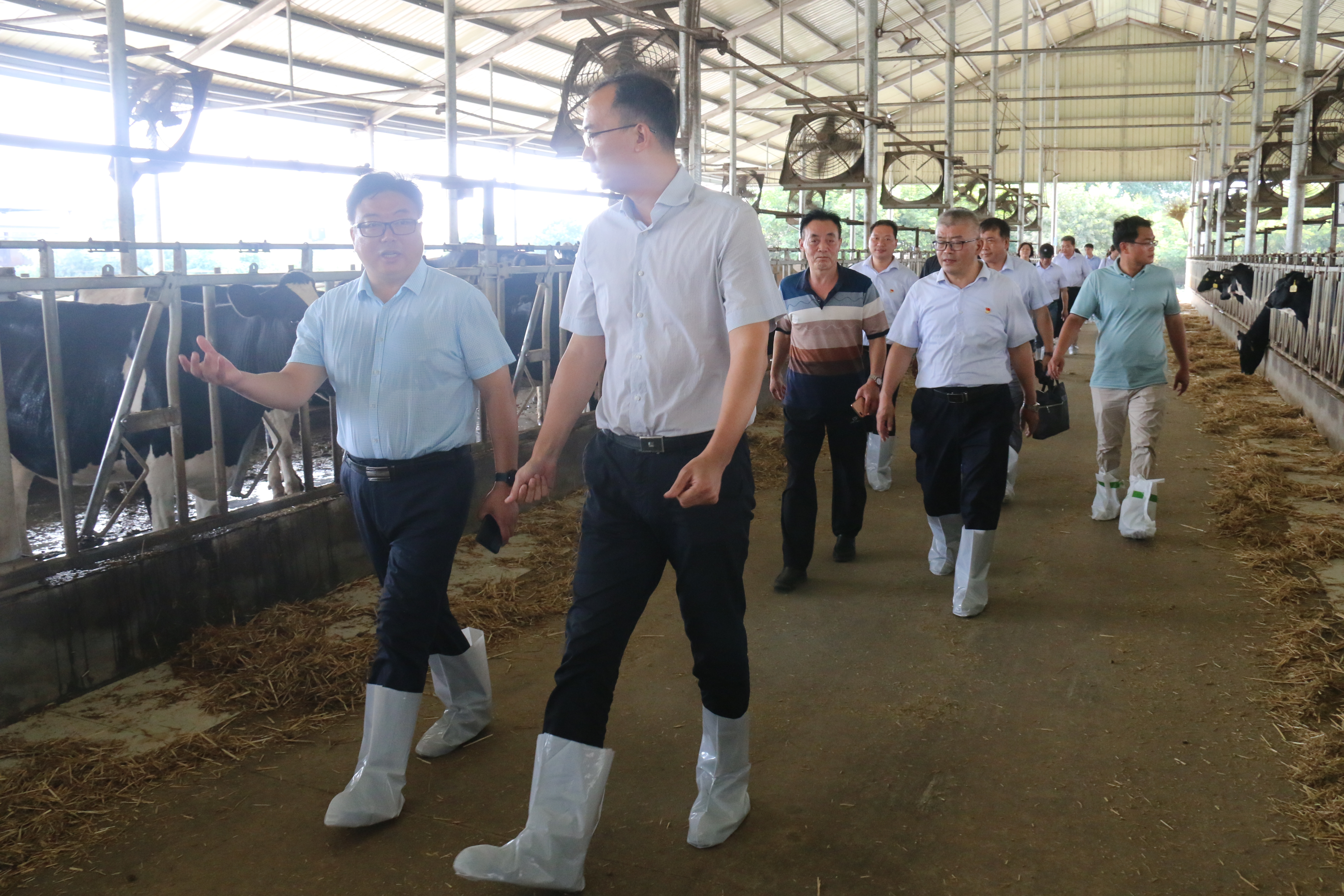在宿迁市泗洪县,我场一行先后来带泗洪县农业农村局和爱德卫岗(泗洪)生态牧场,大家听取了泗洪县畜牧兽医站王化江站长对于泗洪县奶牛养殖情况的介绍,听取爱德卫岗(泗洪)生态牧场王永宽副场长关于牧场整体经营情况的介绍,牧场通过全混合日粮监管系统,对每一头牛的饲料、营养、配比区别配置,保障奶牛的最佳健康状态,从奶源上保证品质。房东升书记介绍我场高邮生态智慧牧场情况并邀请王化江站长和王永宽副场长等泗洪同仁前往我场参观交流,双方就饲料种植、原奶生产、储存制冷等环节展开交流。