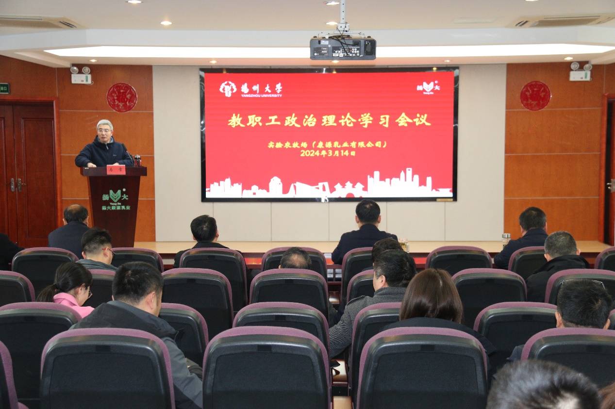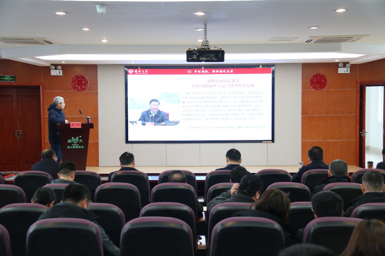 3月14日下午,我场在食品产业园场区科技报告厅组织召开教职工政治理论学习会议。党总支书记马雷主持会议并作“开学第一课”专题培训。