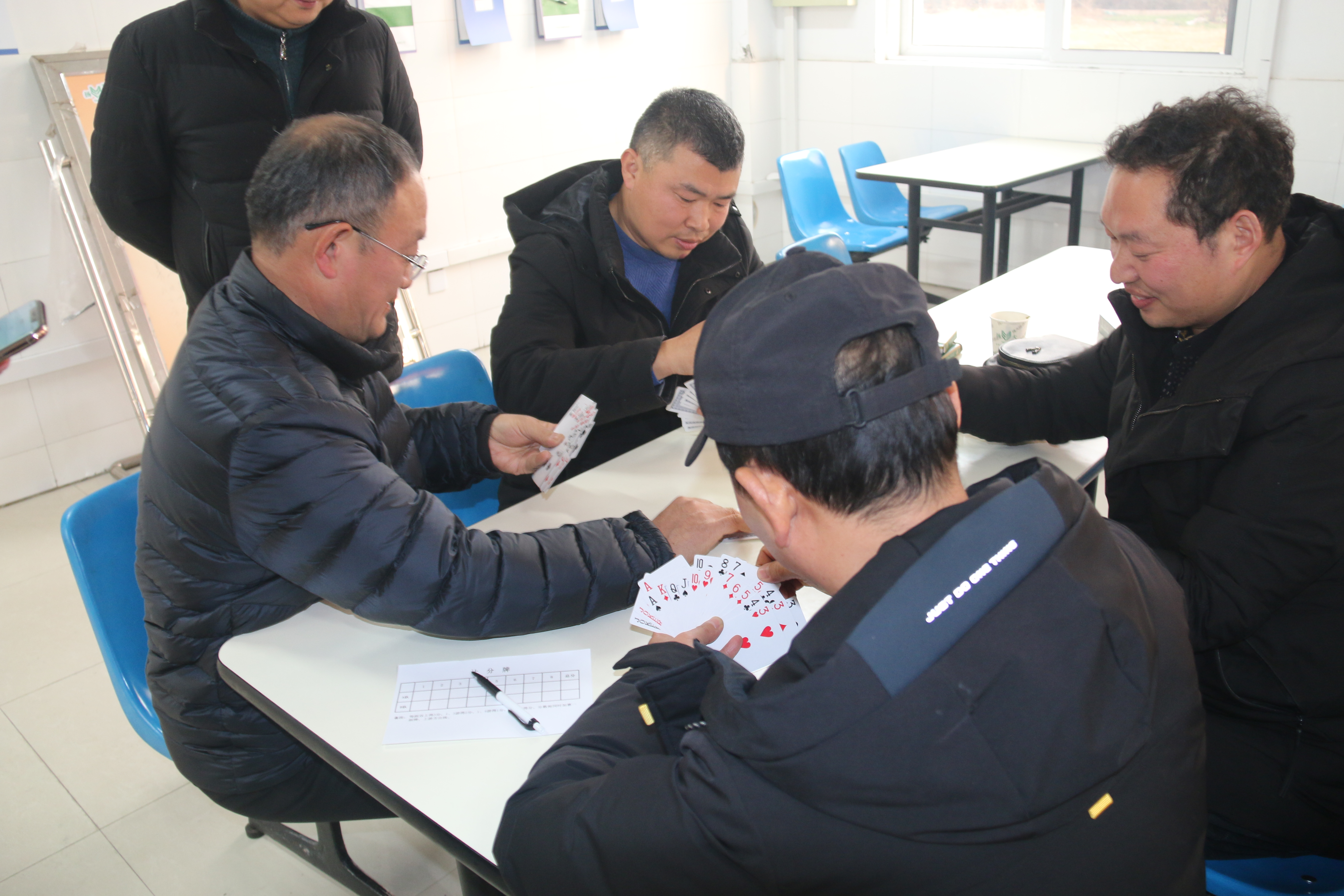 扬大康源乳业第三届职工掼蛋比赛分为两个阶段进行,第一阶段各部门进行预赛,根据决赛分配名额,决出各部门代表队伍进入第二阶段公司16强决赛,第二阶段在12月22日下午进行,在赛前抽签决定比赛对阵双方。
