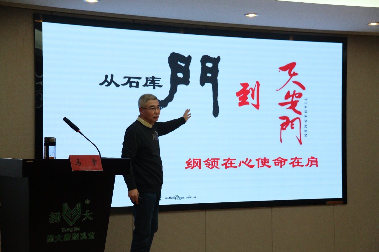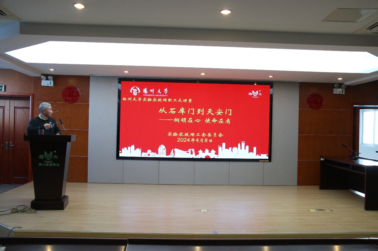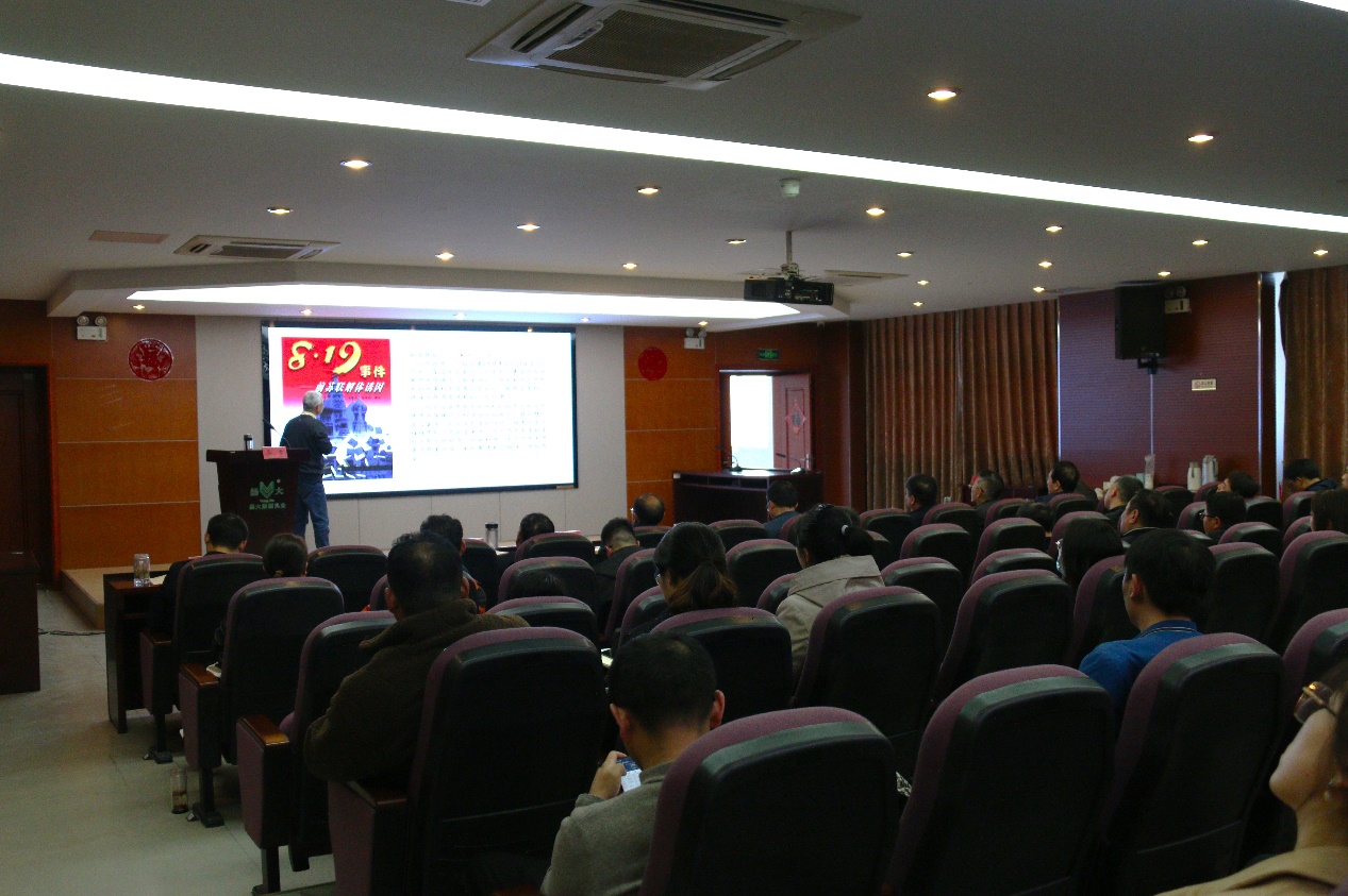 4月8日下午,我场工会组织职工大讲堂活动,党总支书记马雷以《从石库门到天安门,纲领在心使命在肩》为题给全体职工开展学习。