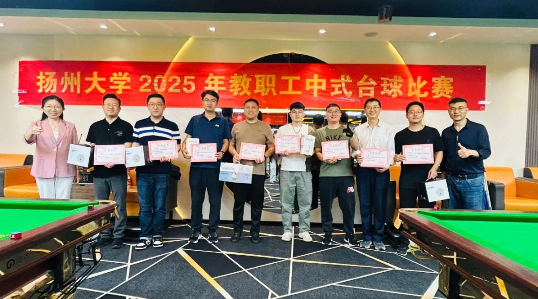 5月18日,扬州大学2025年教职工中式台球比赛成功举办。我场工会组织职工积极参赛,男女组别均有选手进入前八。其中,李良友获得男子组亚军,方晨获得女子组第8名。